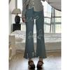 Jeans Retro de Talla Grande Elásticos Azul Claro para Mujer Verano Gordo mm Cintura Alta Look Adelgazante Herradura Micro Acampanados Pantalones Nueve Puntos
