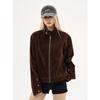 2025 Nuevo Americano Retro Versátil Nueva Chaqueta Marrón de Ante con Cuello Alto Doble Cremallera Abrigo Corto de Primavera para Mujer Trendy