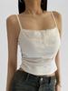 Estilo Lujuria Pura Camisola Dulce y Picante con Encaje Empalmado y Botones con Almohadillas para el Busto Verano Nuevo Ajuste Entallado Top Corto para Fondo