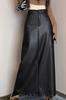 Falda retro de otoño e invierno falda midi de piel sintética línea A para mujer con abertura falda larga ajustada de cintura alta adelgazante verano mediados de 2025