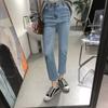 Compra Jeans cigarette de pierna recta de talle alto para mujer 2025 otoño nuevo azul claro súper adelgazantes primavera y otoño adelgazantes de nueve puntos con forro polar al por mayor en Joom.pro
