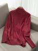 Otoño e Invierno Color Sólido Suave y Cómodo Holgado Jersey de Cuello Alto para Mujer Tejido de Cachemira Camisa Base Manga Raglán Manga Larga Adelgazante
