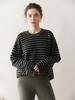 Suéter de Cachemira a Rayas Holgado y Relajado para Mujer, Suéter de Hombros Caídos, Nuevo Jersey de Punto de Lana con Cuello Redondo, Otoño e Invierno 2025