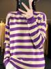 Suéter Básico Rayado Versátil de Cuello Redondo para Mujer Otoño e Invierno Camisa Base de Punto Estilo Perezoso Top Sencillo