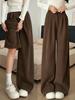 Pantalones de pana anchos color café para mujer, nuevo estilo de otoño 2026, casual petite, pierna recta ajustada, pantalones de traje fluidos