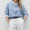 En Stock Mayorista del Fabricante Nueva Moda 2025 Camisa de Color Bloque Estructurada con Rayas Finas para Mujer