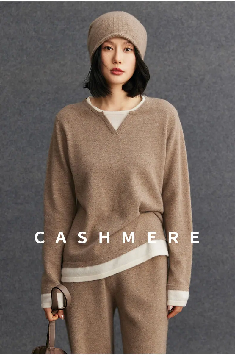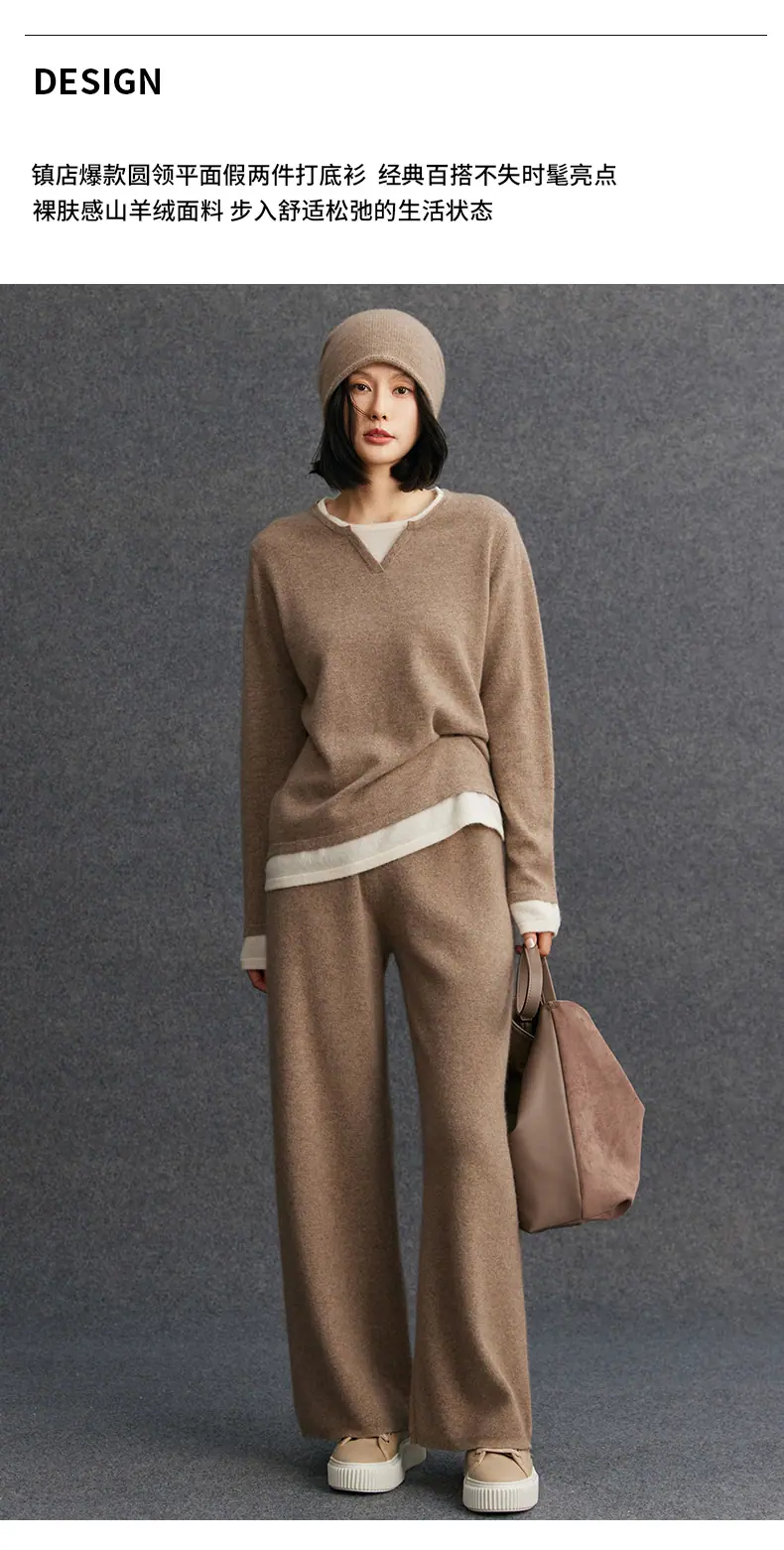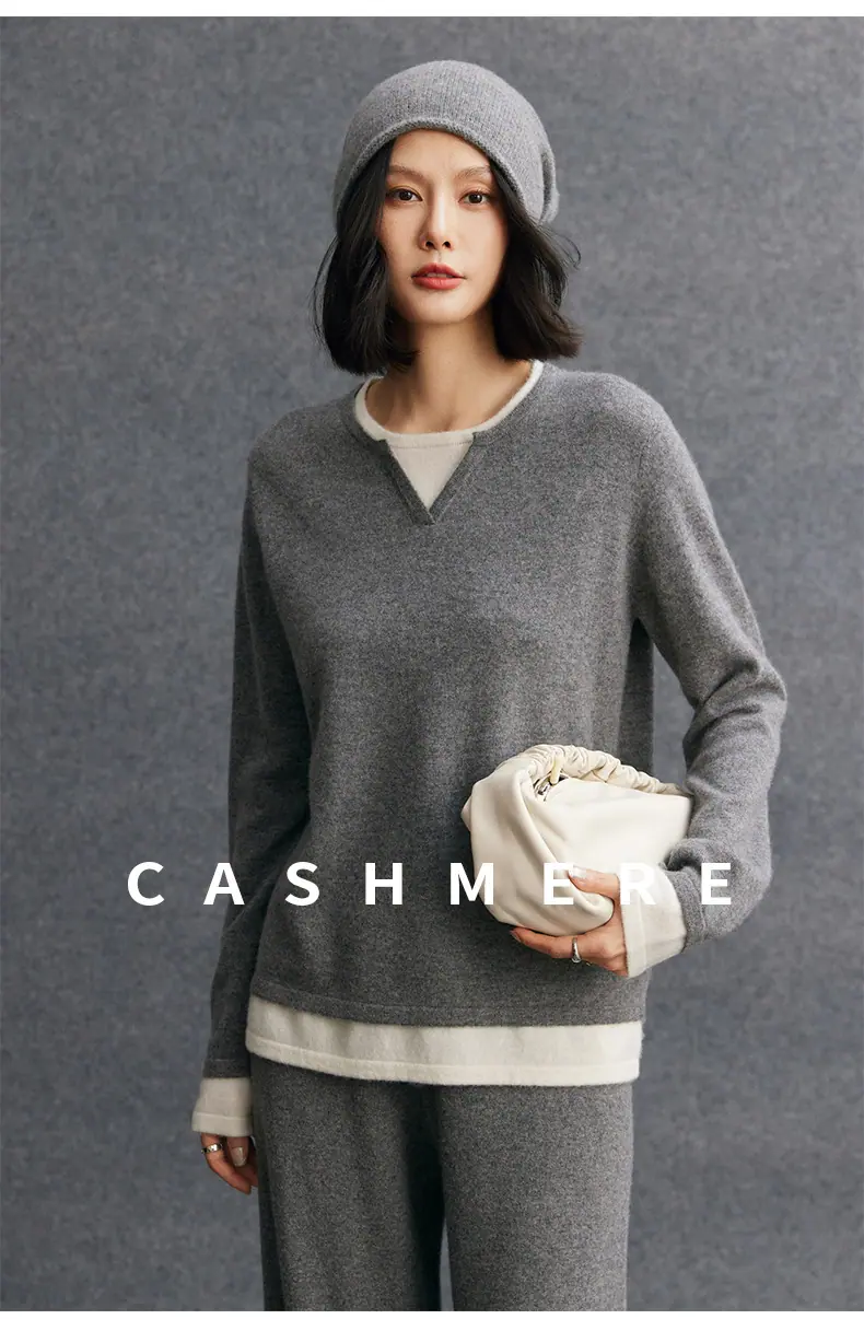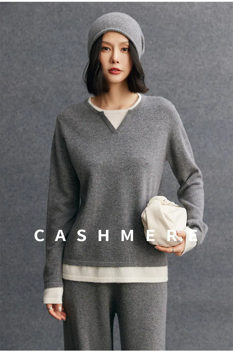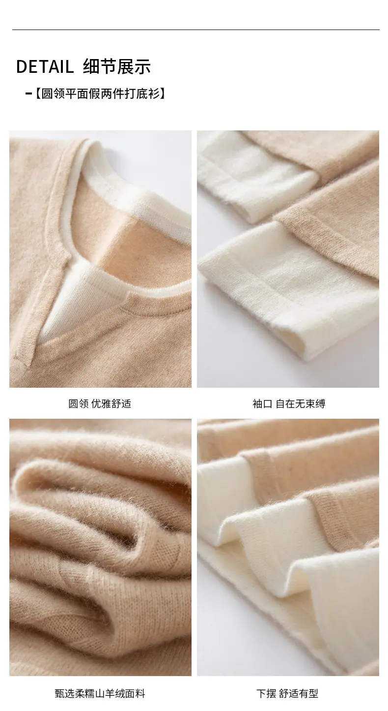 Nuevo Otoño e Invierno Cachemira Mujer Cuello Redondo Falso Dos Piezas Moda Casual Temperamento Sencillo Suelto Versátil Suéter de Cachemira