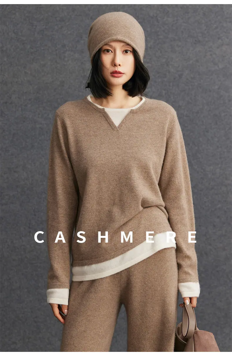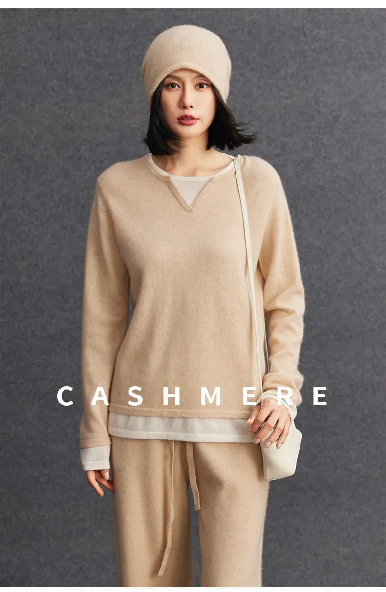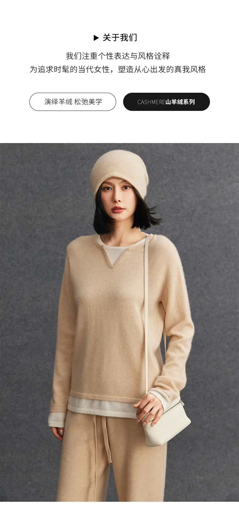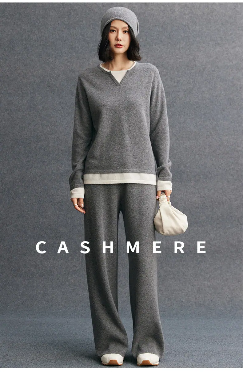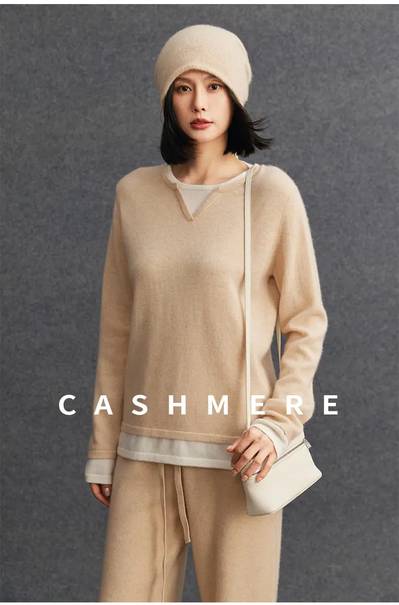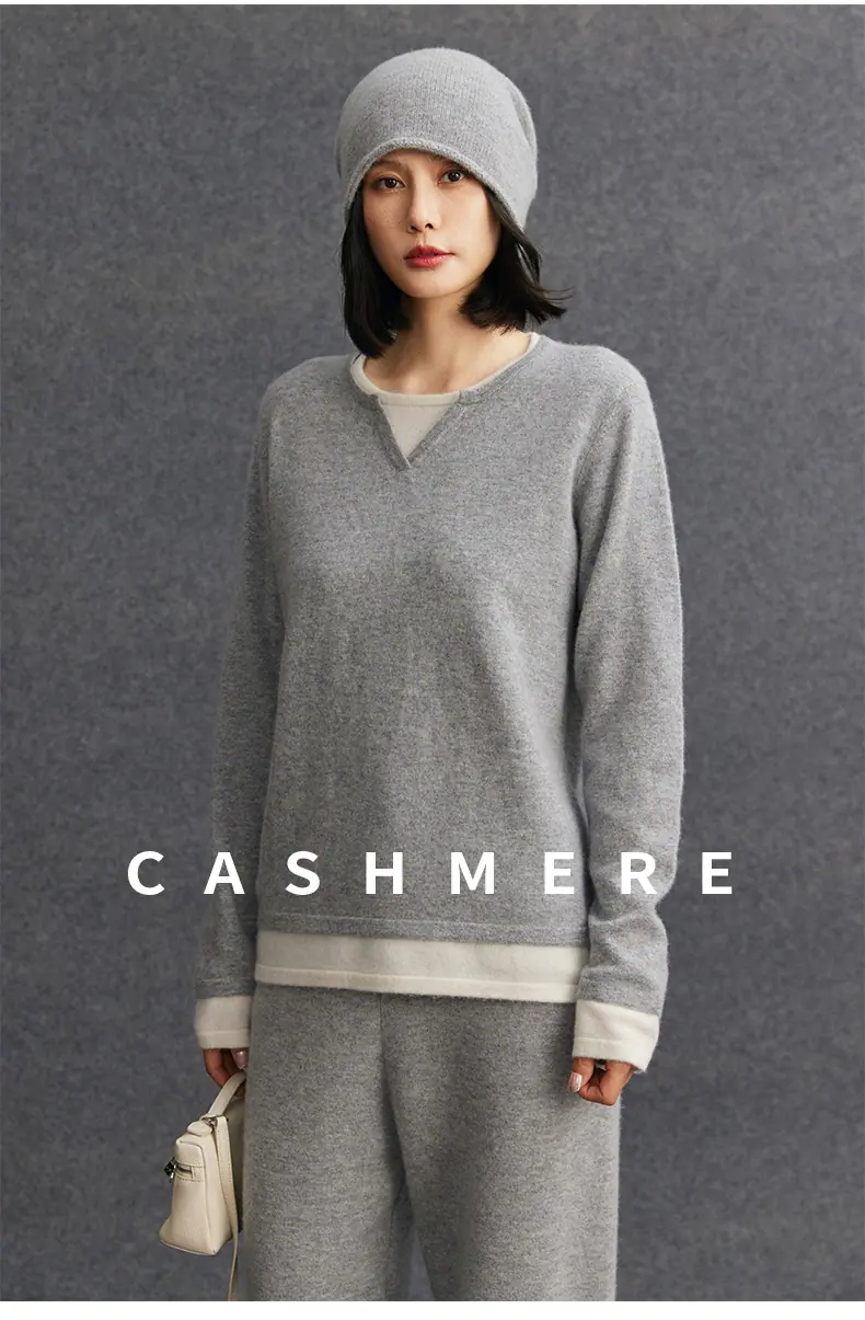 Nuevo Otoño e Invierno Cachemira Mujer Cuello Redondo Falso Dos Piezas Moda Casual Temperamento Sencillo Suelto Versátil Suéter de Cachemira
