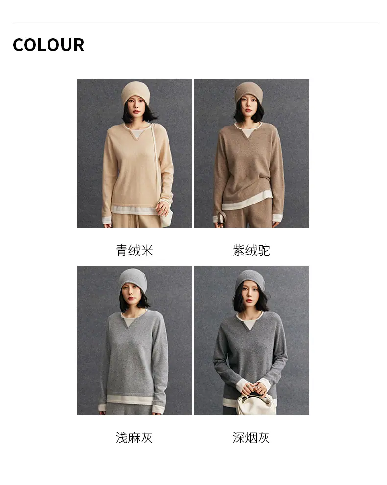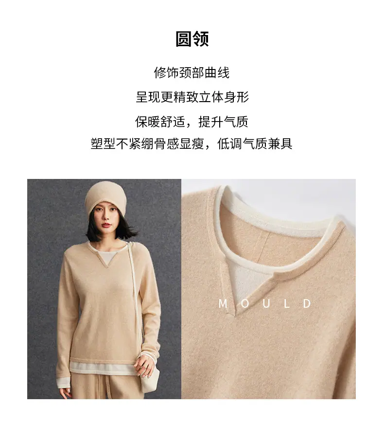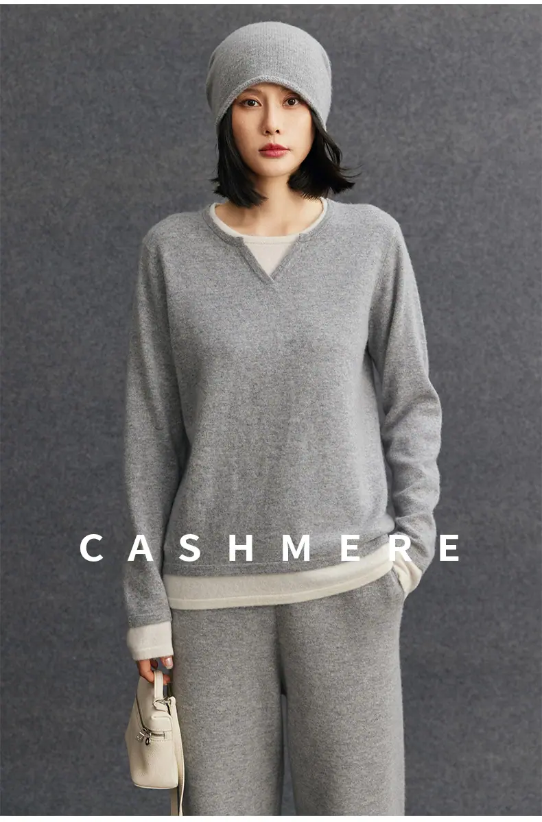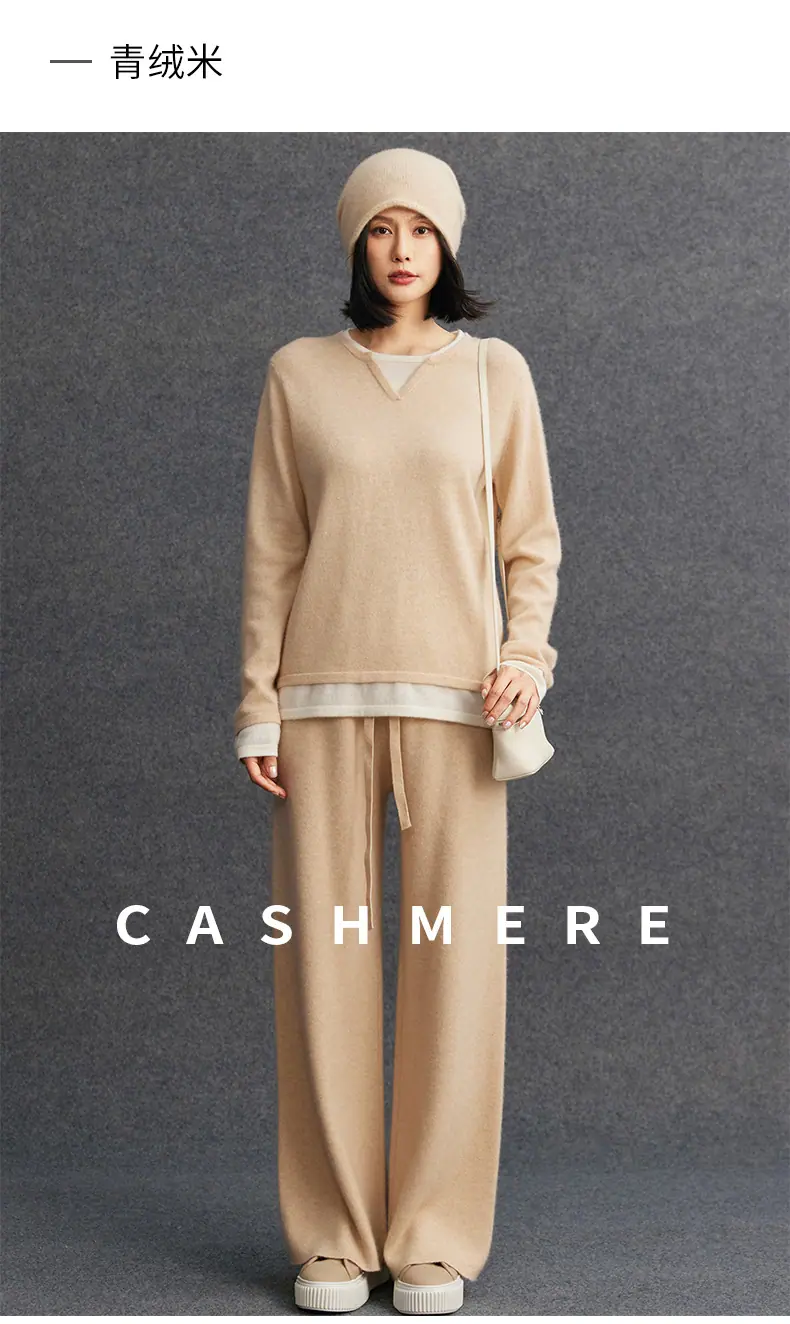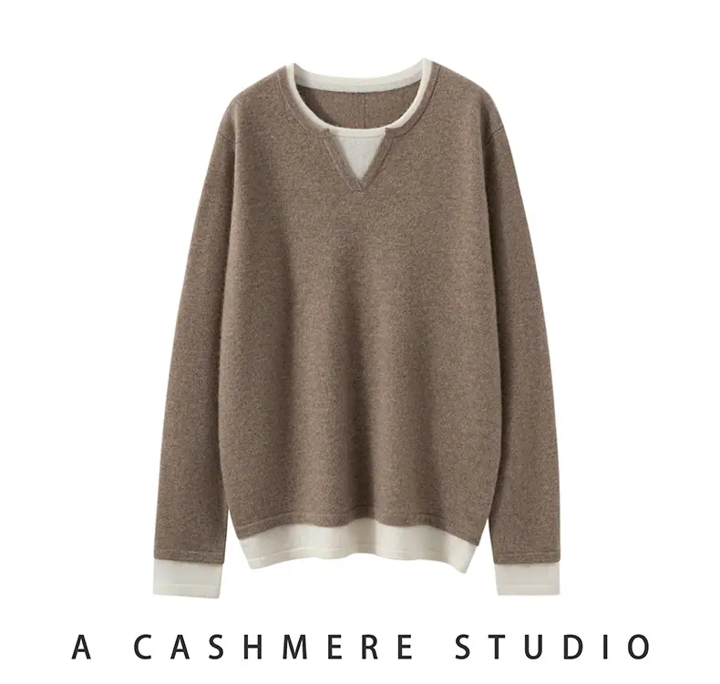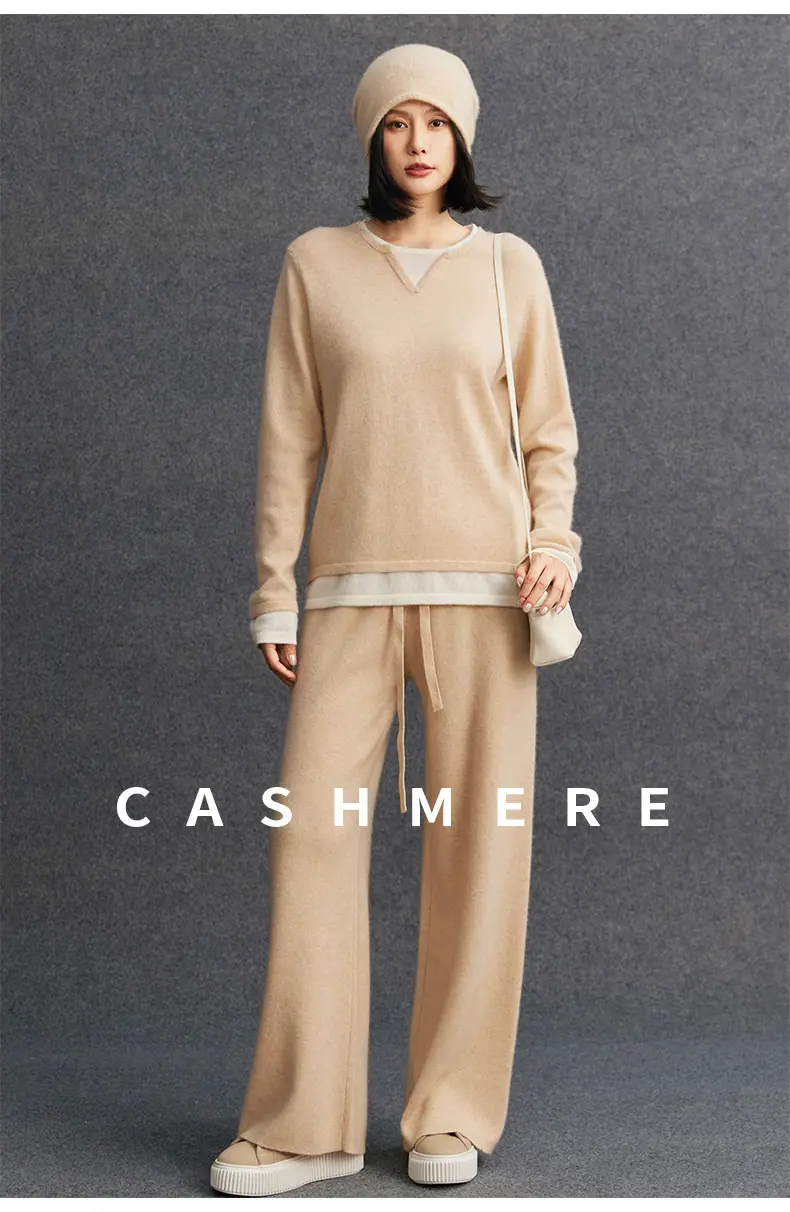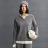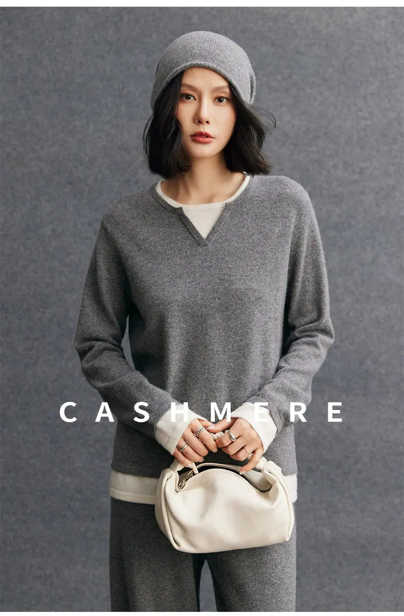 Nuevo Otoño e Invierno Cachemira Mujer Cuello Redondo Falso Dos Piezas Moda Casual Temperamento Sencillo Suelto Versátil Suéter de Cachemira