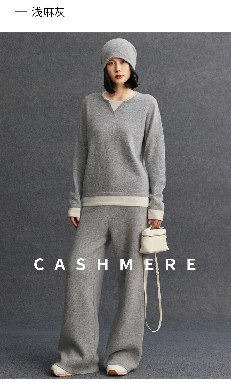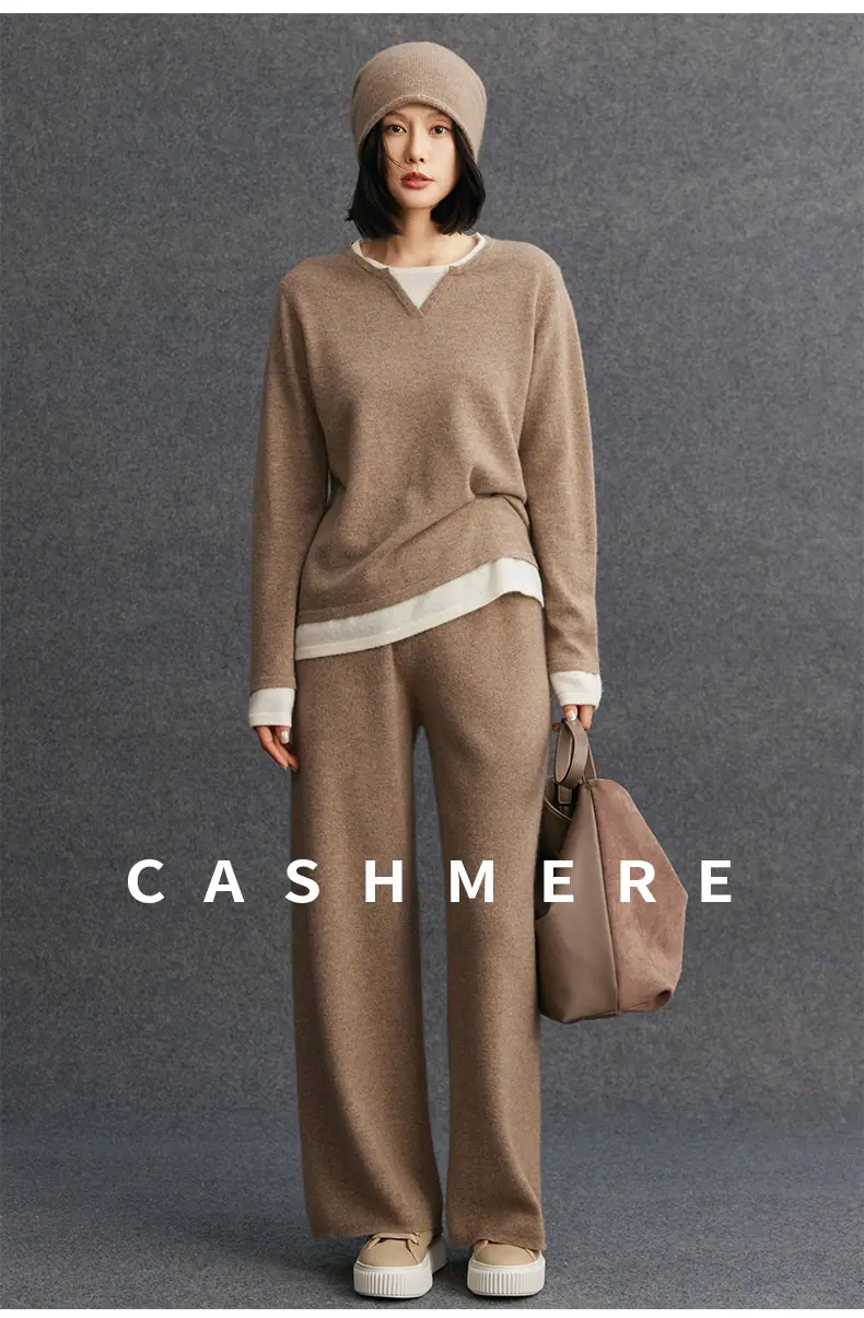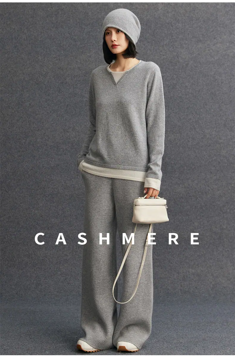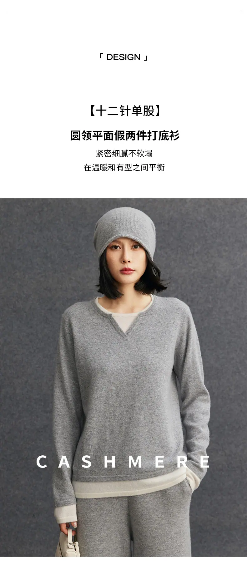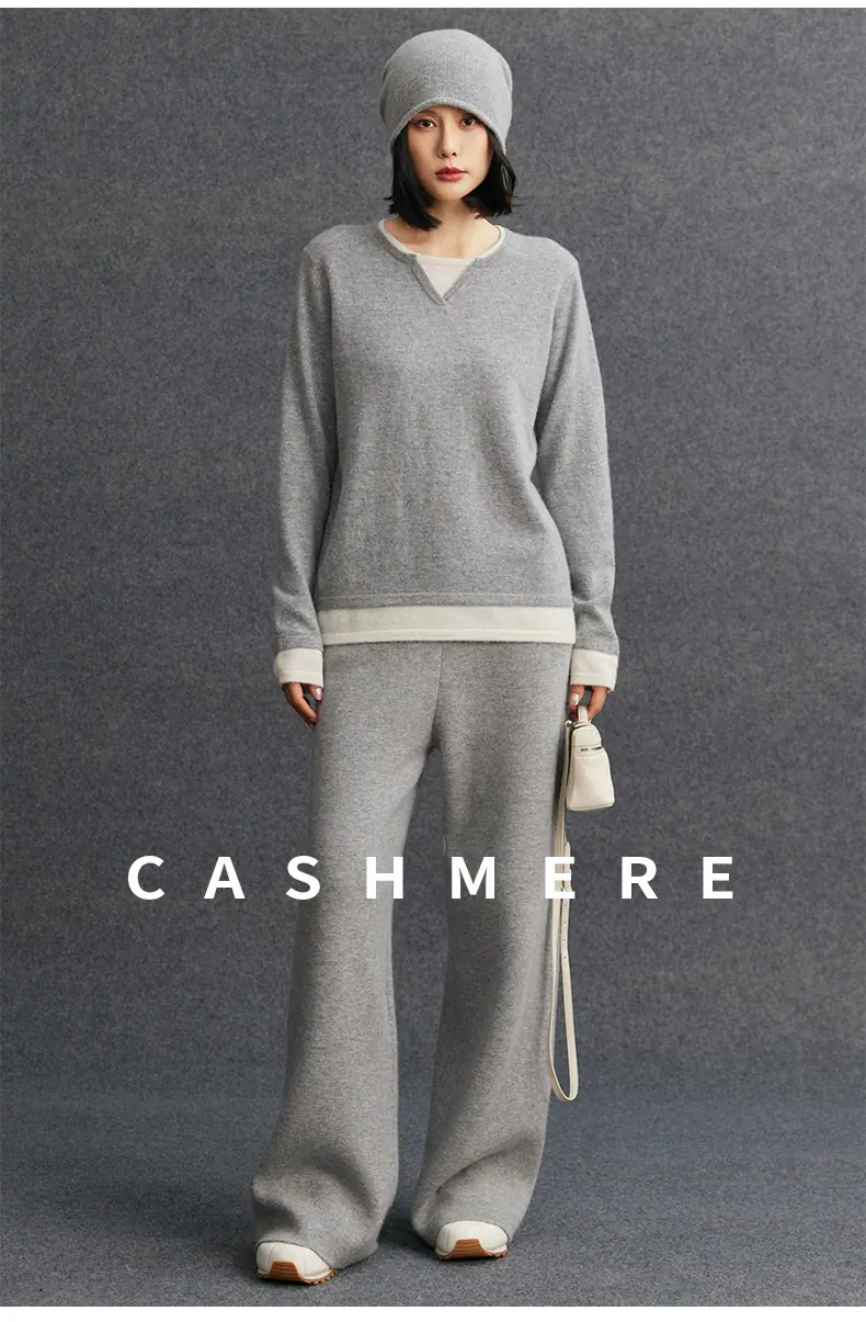 Nuevo Otoño e Invierno Cachemira Mujer Cuello Redondo Falso Dos Piezas Moda Casual Temperamento Sencillo Suelto Versátil Suéter de Cachemira