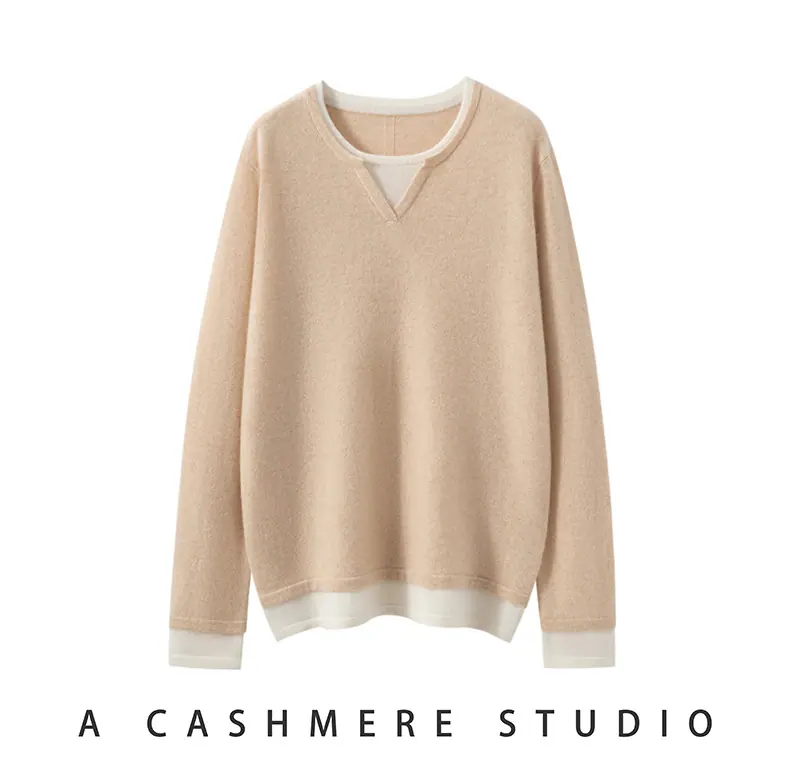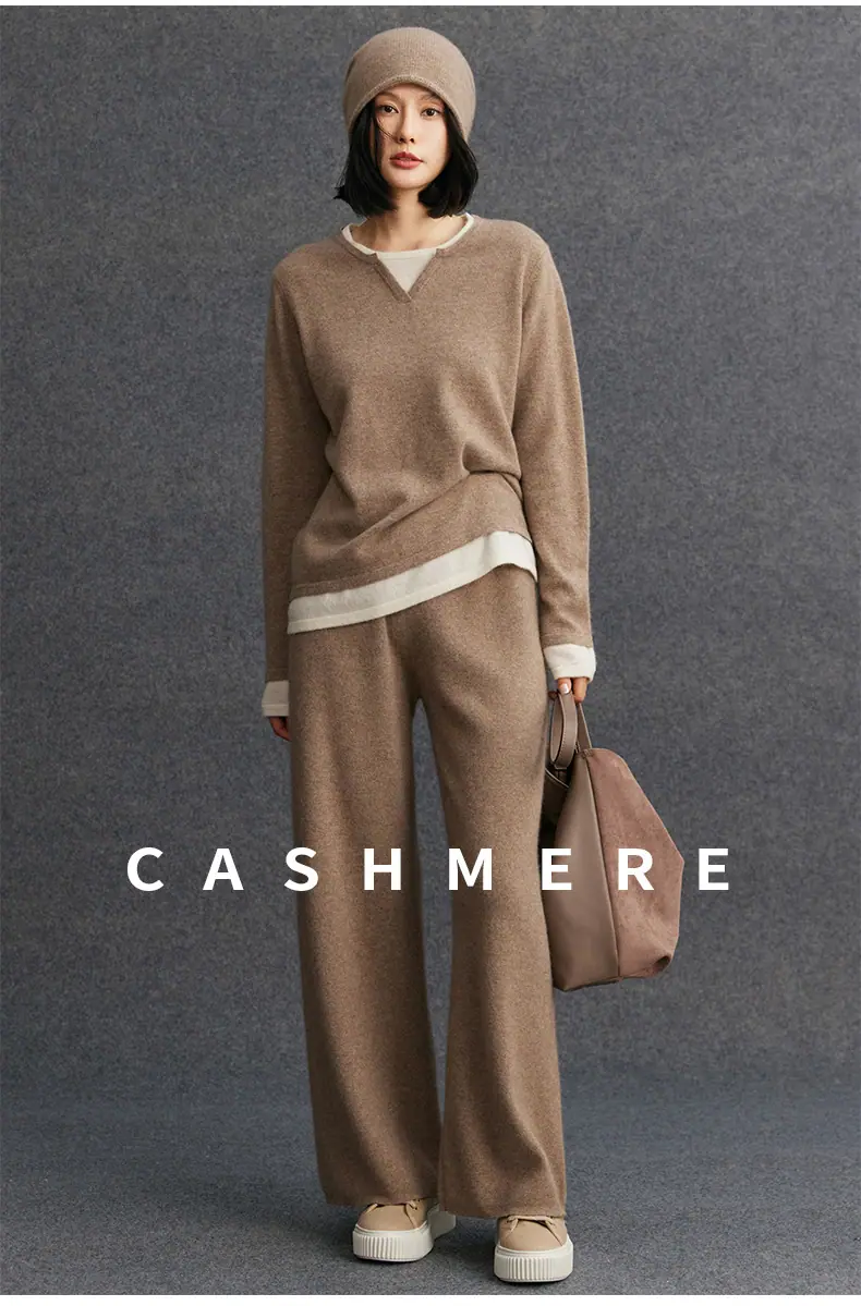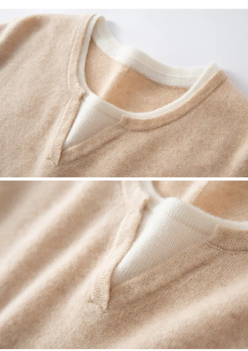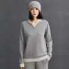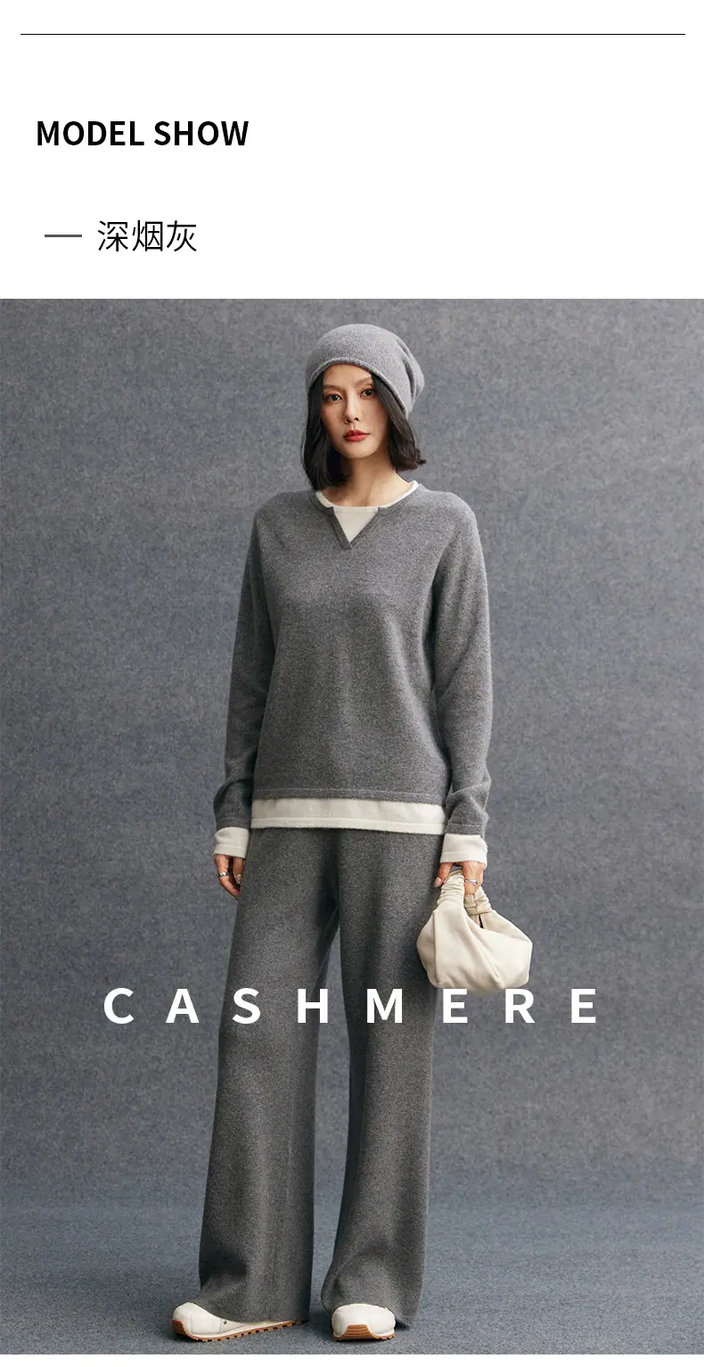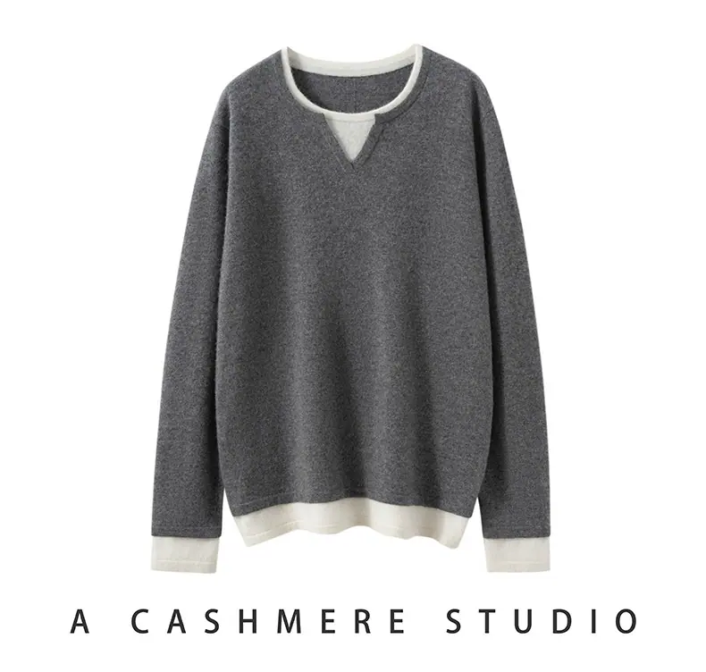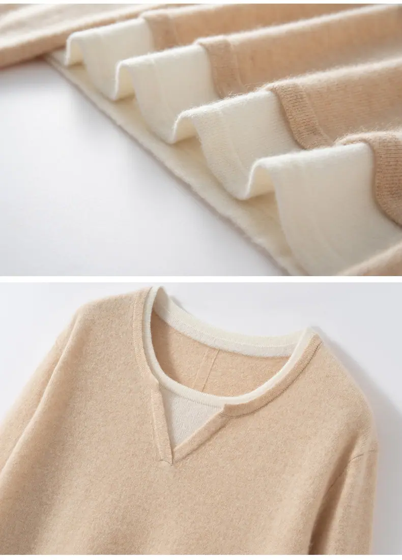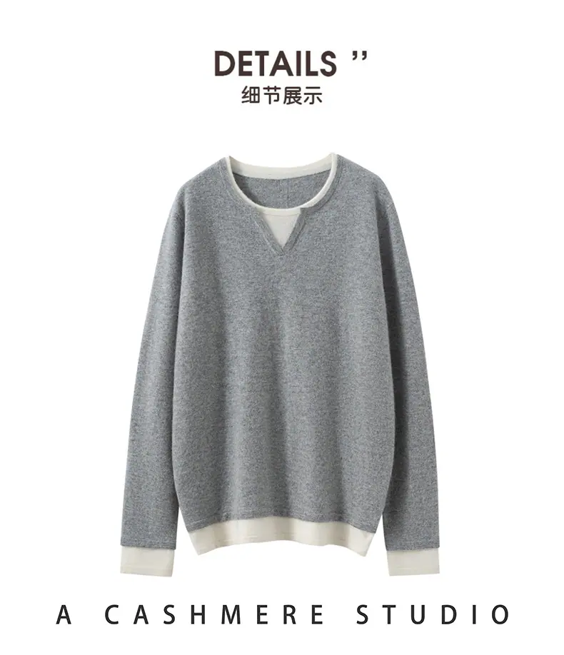 Nuevo Otoño e Invierno Cachemira Mujer Cuello Redondo Falso Dos Piezas Moda Casual Temperamento Sencillo Suelto Versátil Suéter de Cachemira