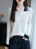 Cárdigan de Punto de Lana Peinada con Solapa para Mujer, Otoño Temprano 2025, Combinación de Colores, Holgado, Versátil, Chaqueta Top de Manga Larga
