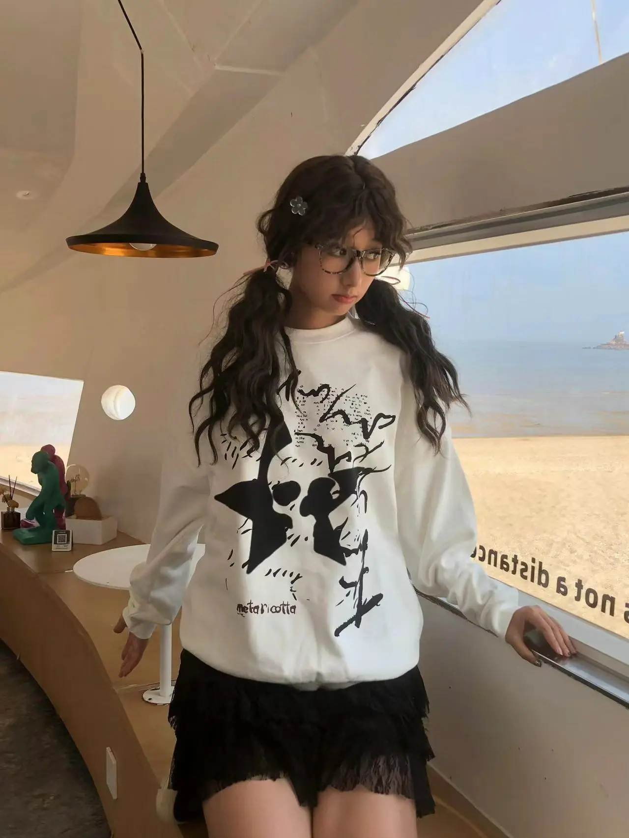 Sudadera de Diseño Americano Estampada Dulce y Cool de Cuello Redondo para Mujer, Otoño e Invierno Versátil Holgada Top de Estudiante, Moderna y Casual
