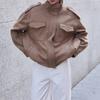 Ropa de Mujer al por Mayor Transfronteriza Otoño Nuevo Estilo Europeo y Americano Cuello Alto Bolsillo de Gamuza Textura de Gamuza Chaqueta