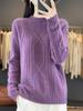 2025 Nuevo Otoño e Invierno Lana Pura de Cuello Alto Medio Tejido de Punto Manga Larga para Mujer Suéter Retorcido Holgado Camisa Base Superior