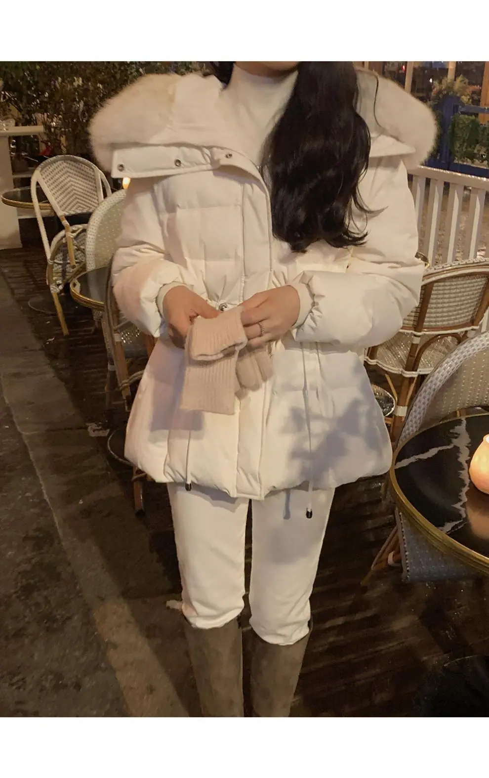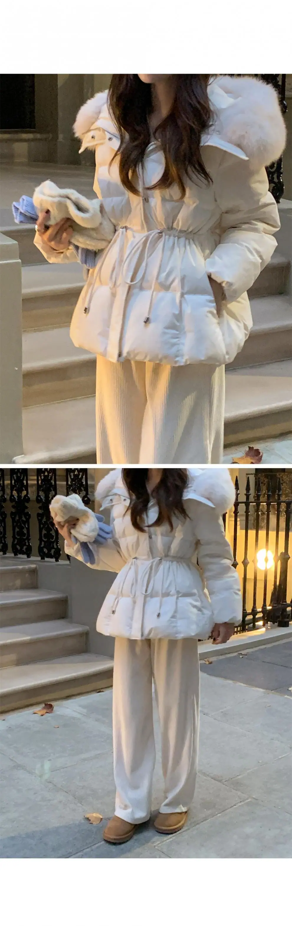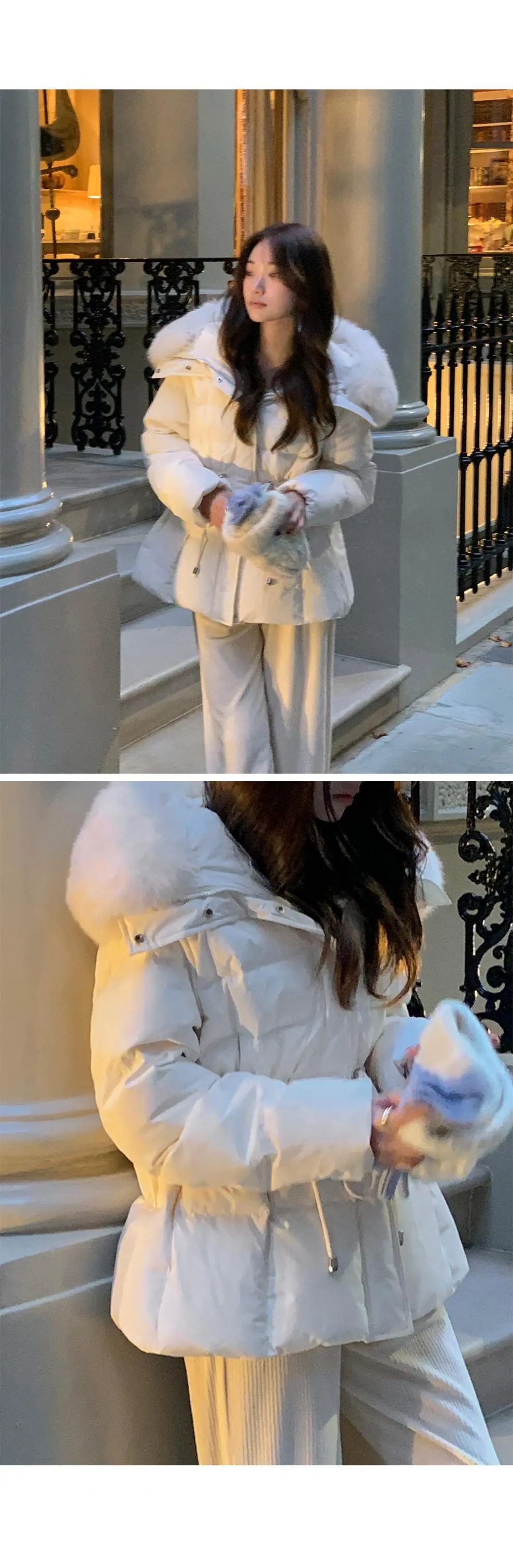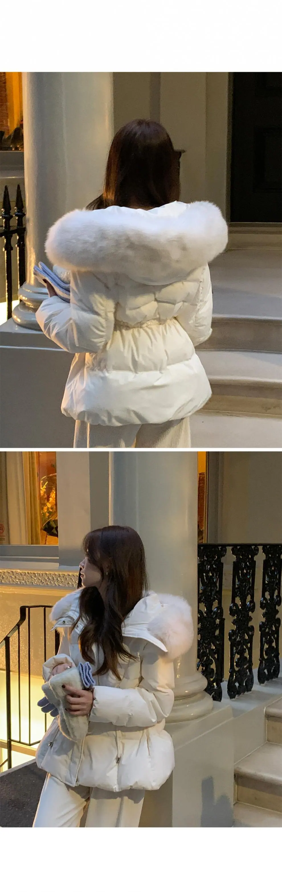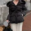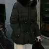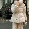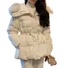 Chaqueta abrigo de algodón coreano de alta gama con capucha, cremallera, cuello grande de piel con cordón ajustable, versión coreana