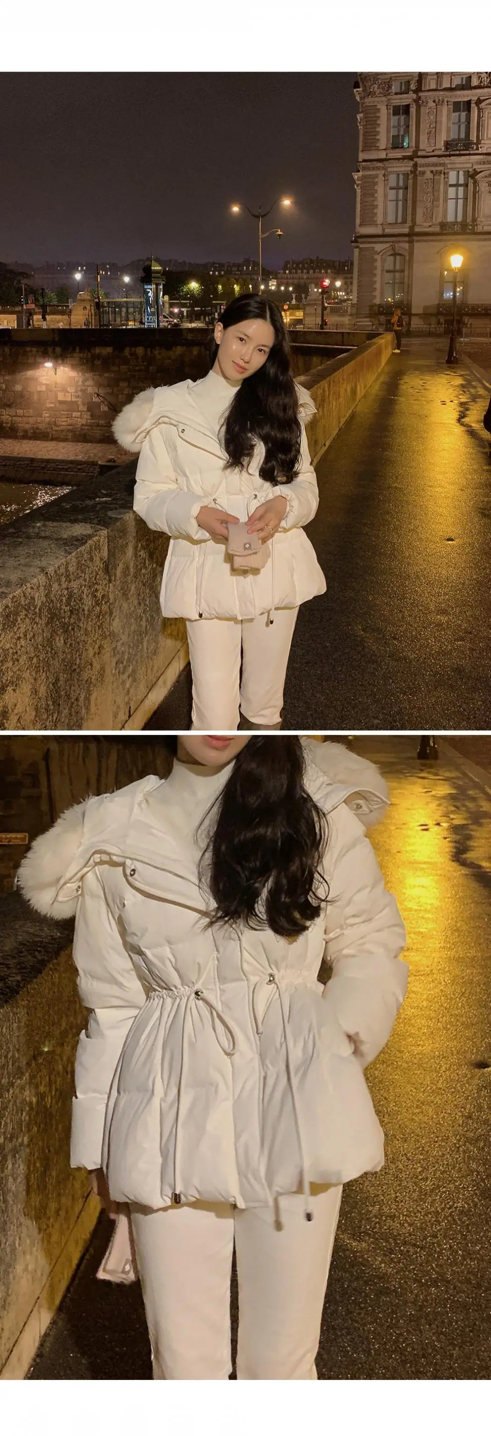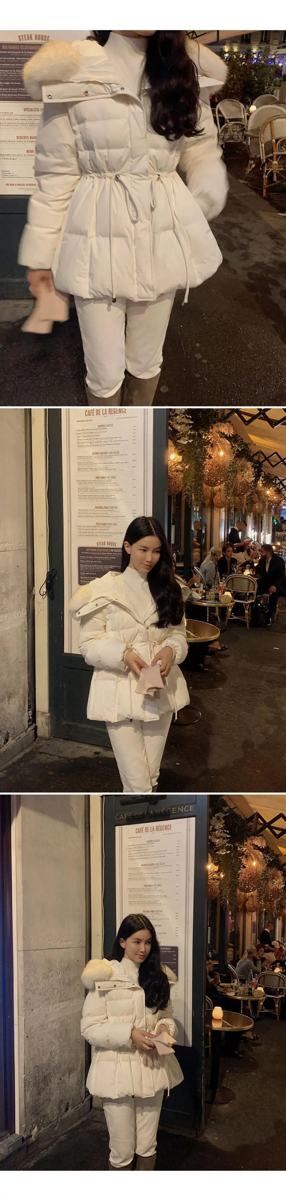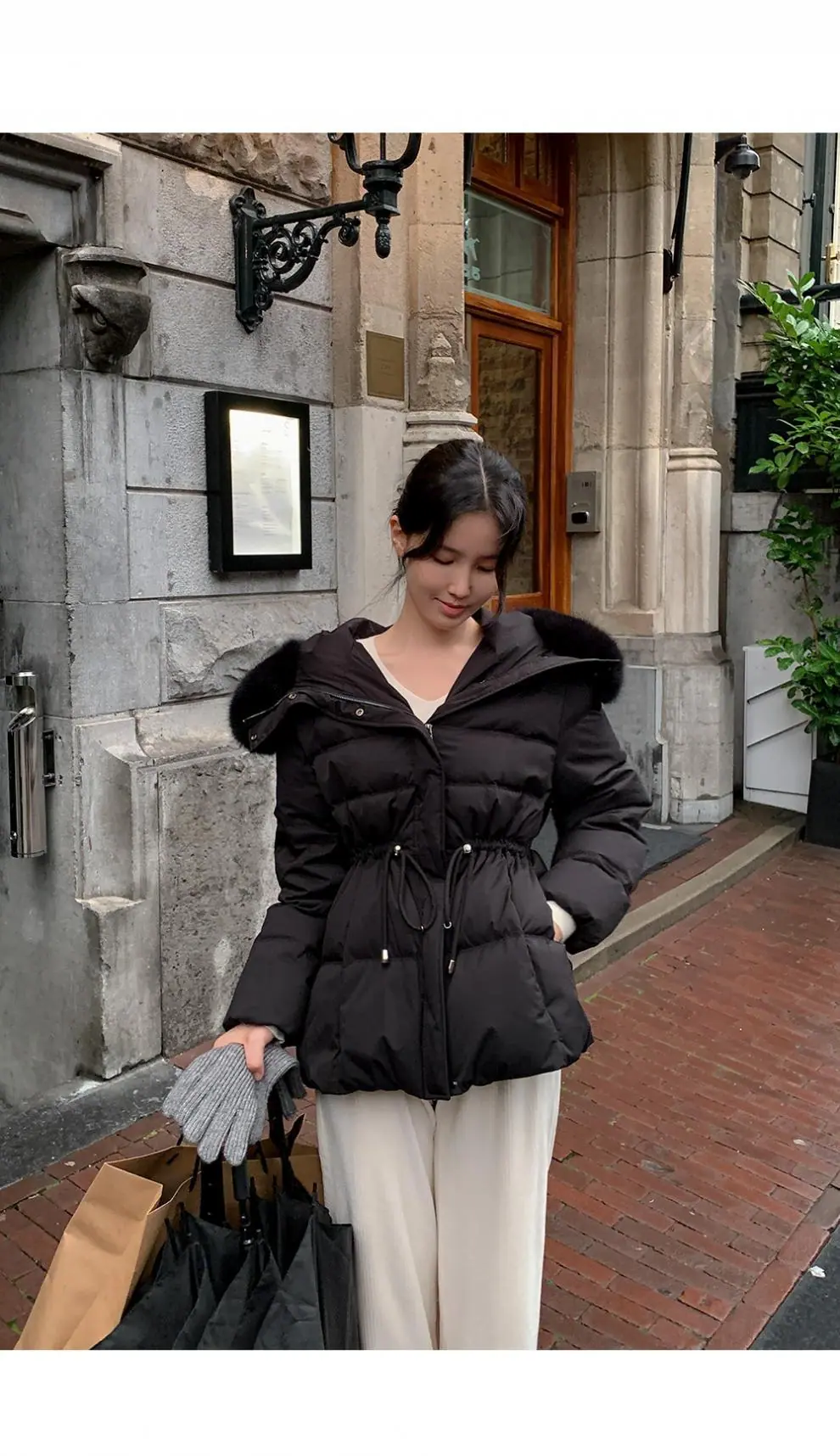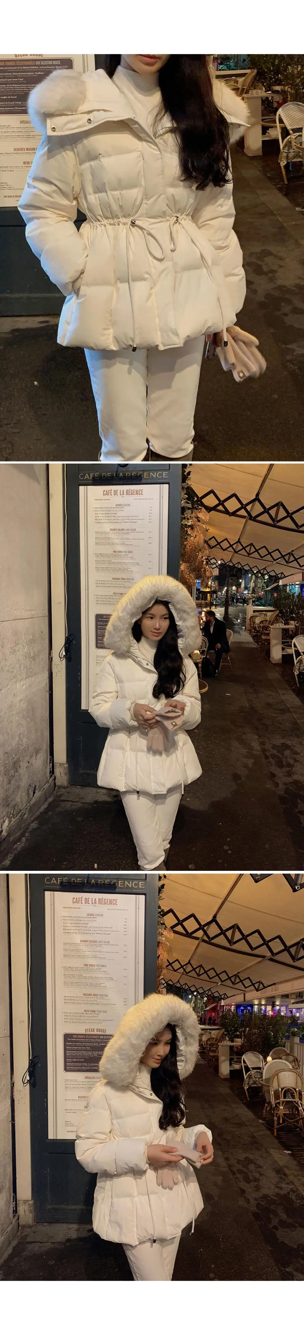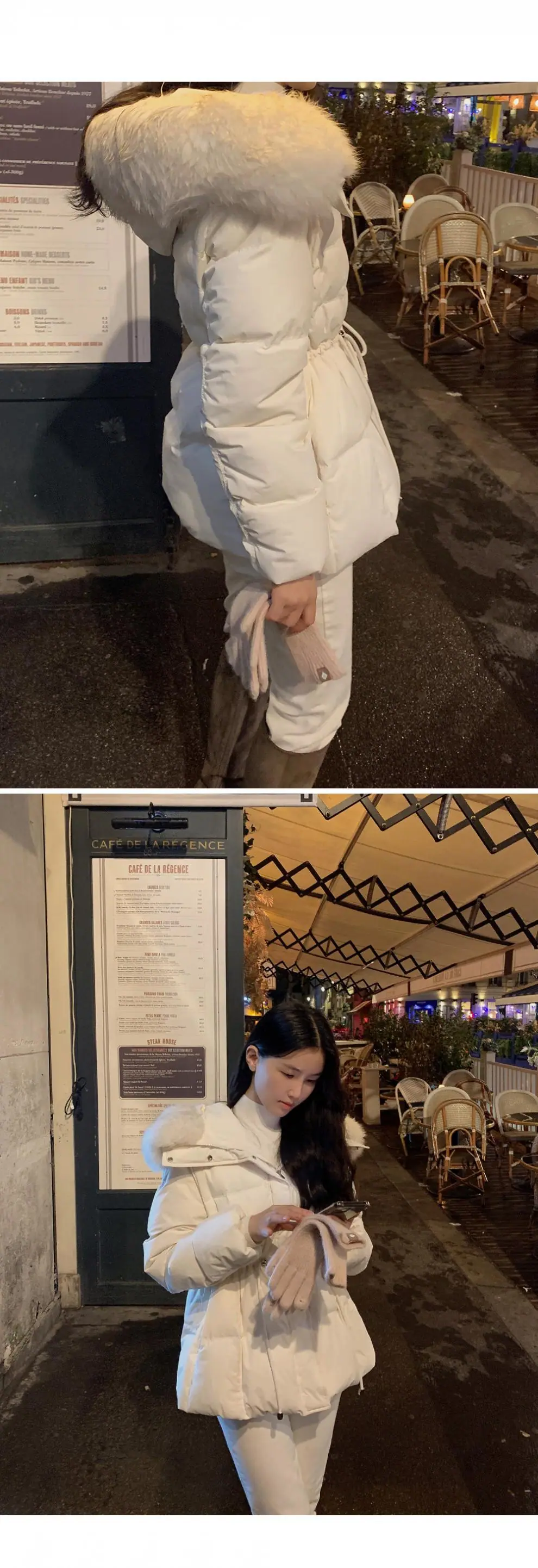 Chaqueta abrigo de algodón coreano de alta gama con capucha, cremallera, cuello grande de piel con cordón ajustable, versión coreana