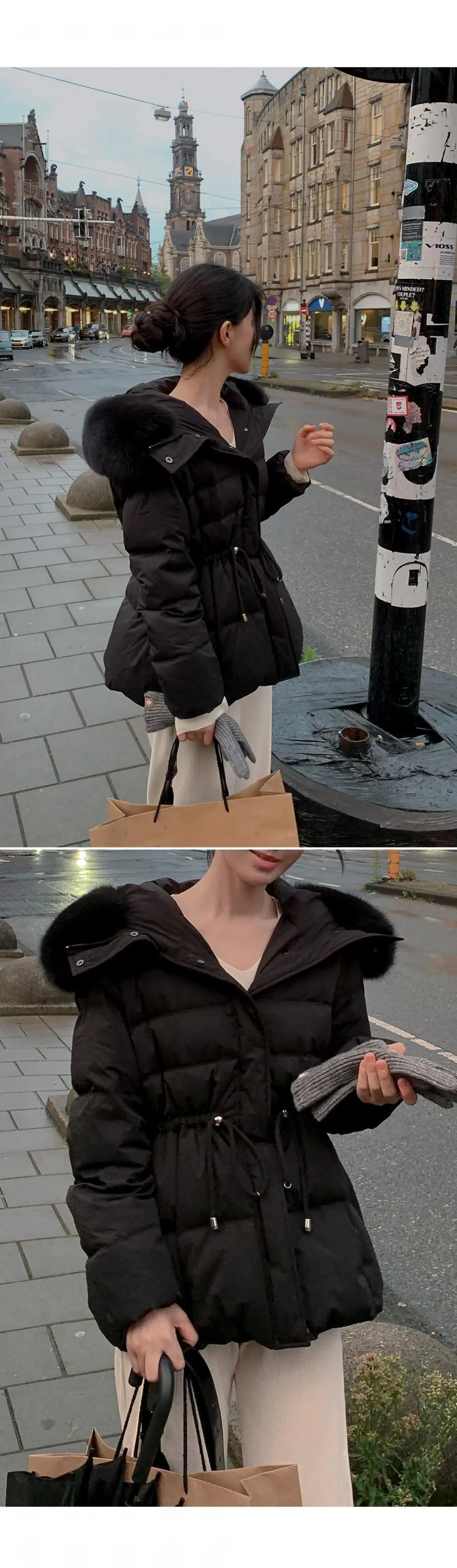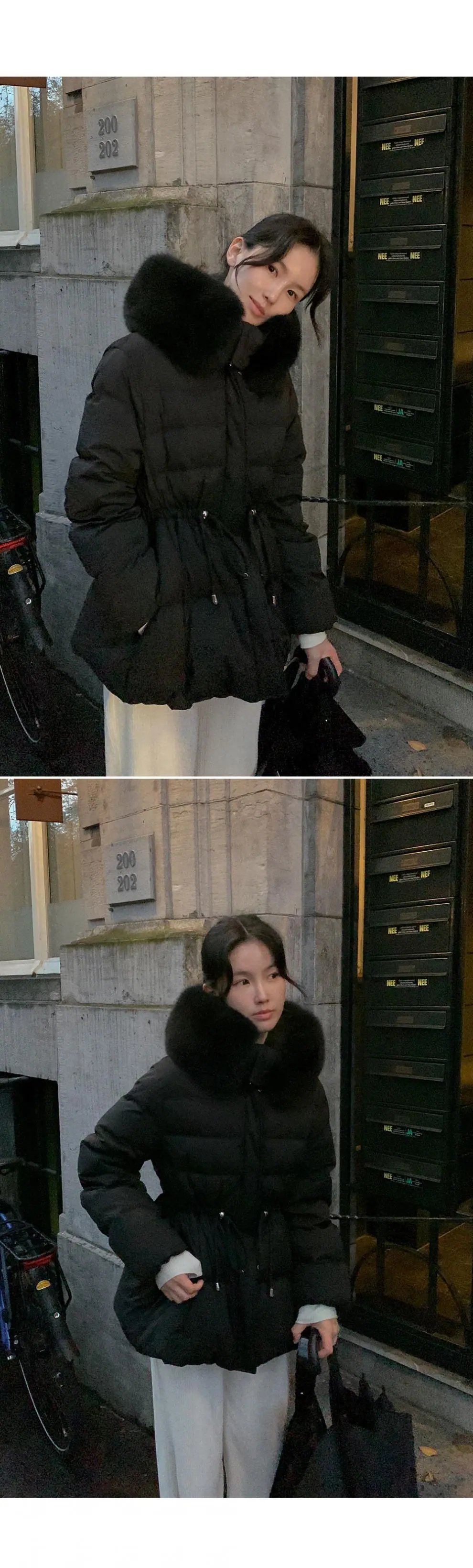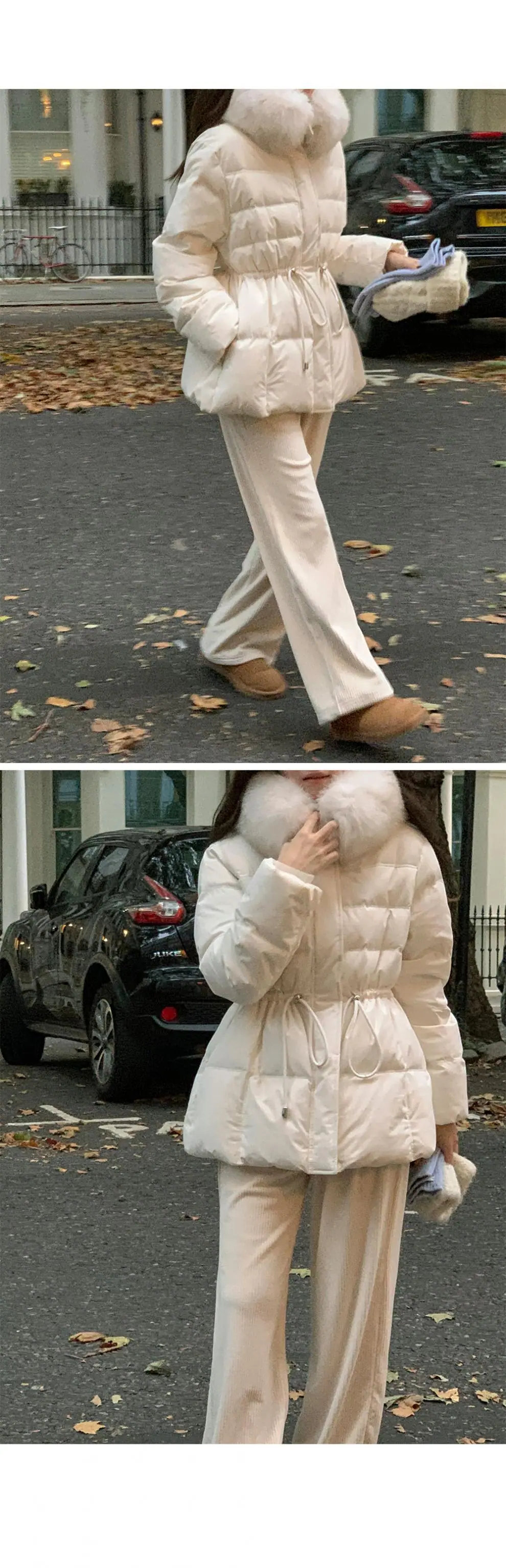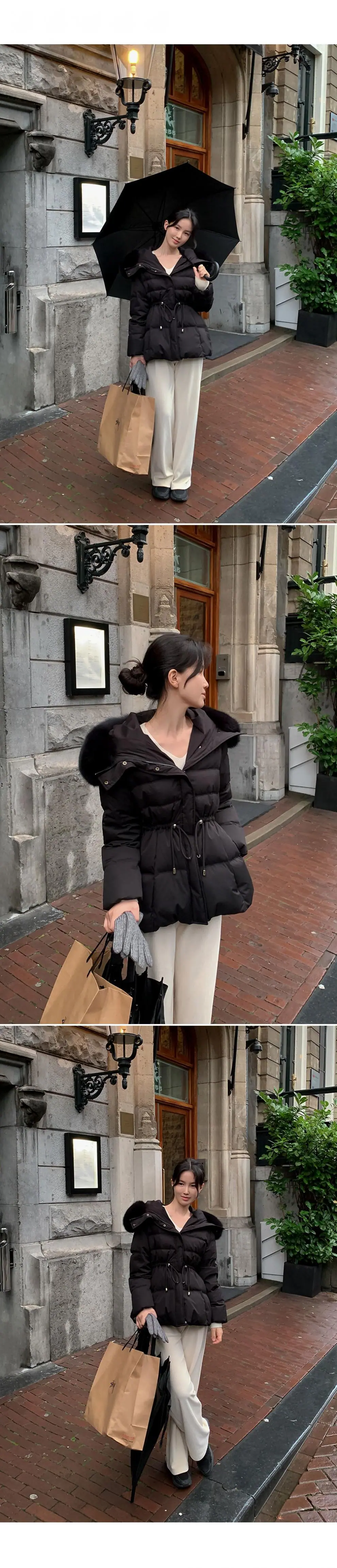 Chaqueta abrigo de algodón coreano de alta gama con capucha, cremallera, cuello grande de piel con cordón ajustable, versión coreana