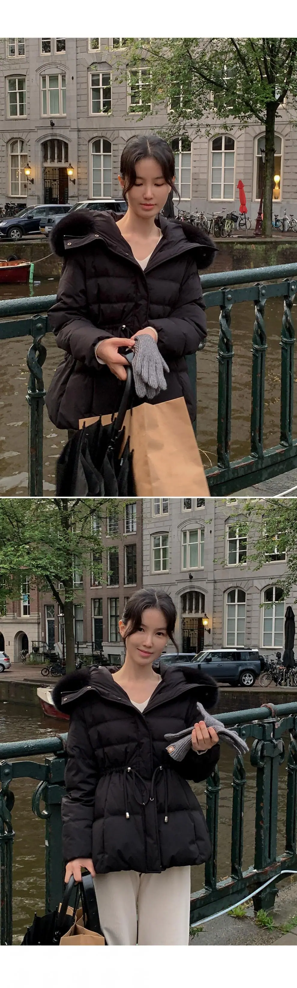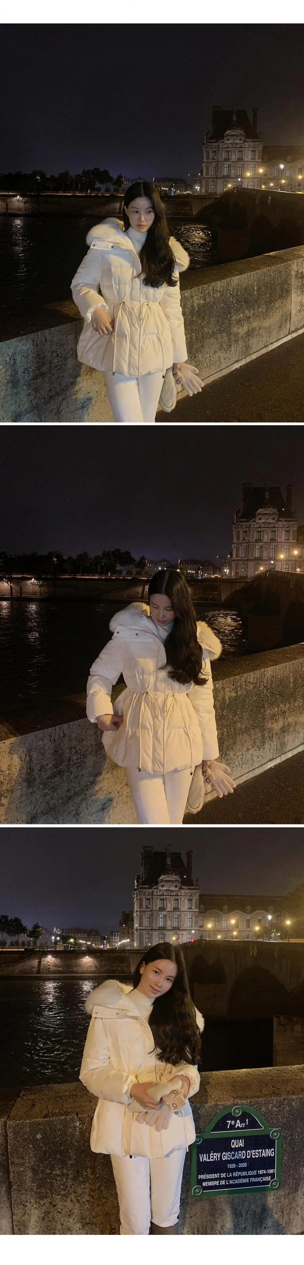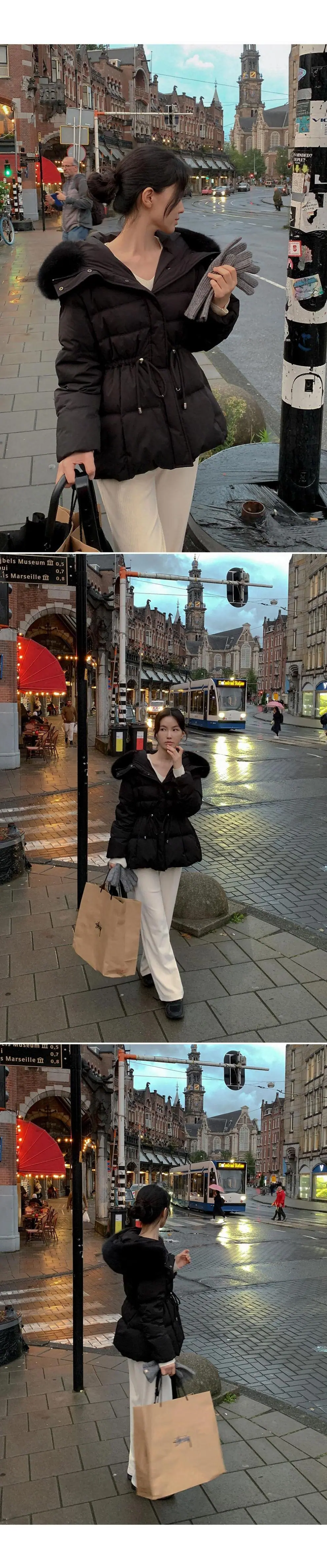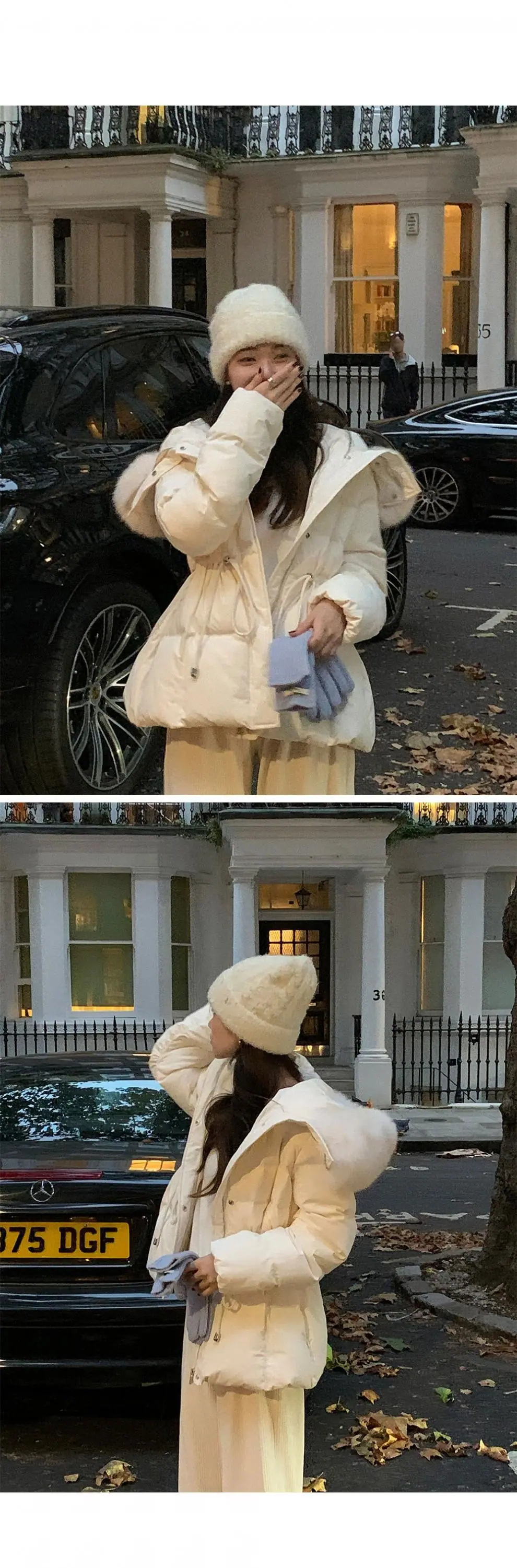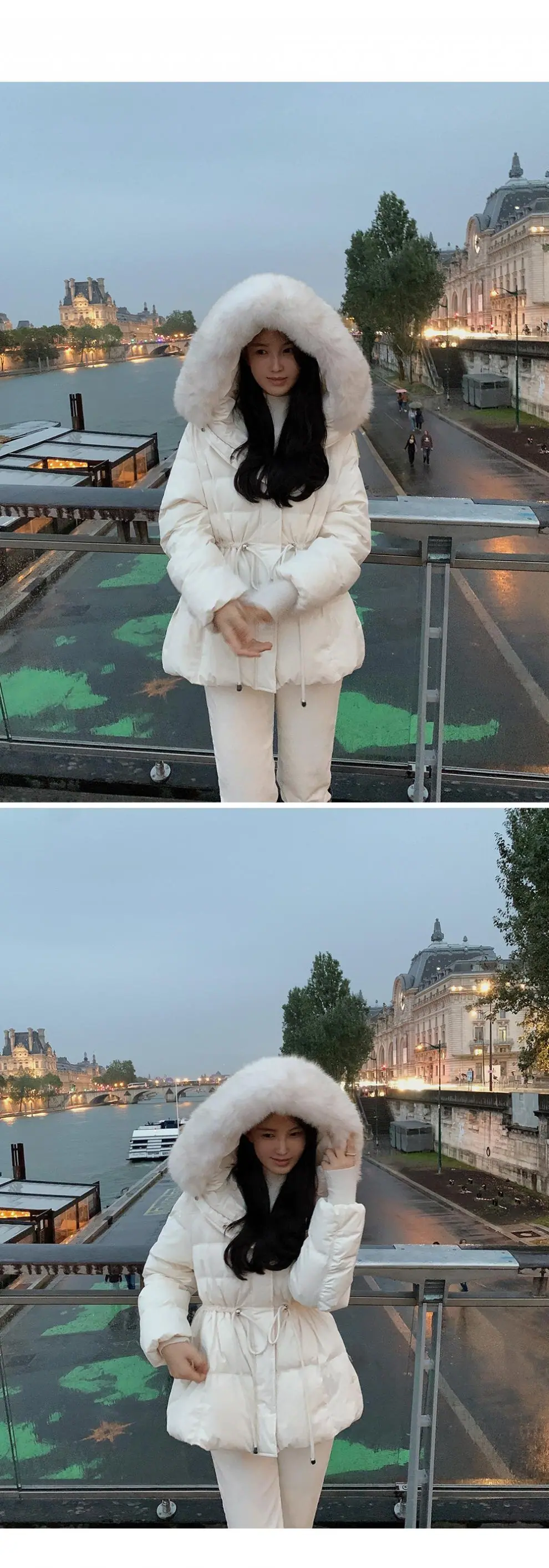 Chaqueta abrigo de algodón coreano de alta gama con capucha, cremallera, cuello grande de piel con cordón ajustable, versión coreana