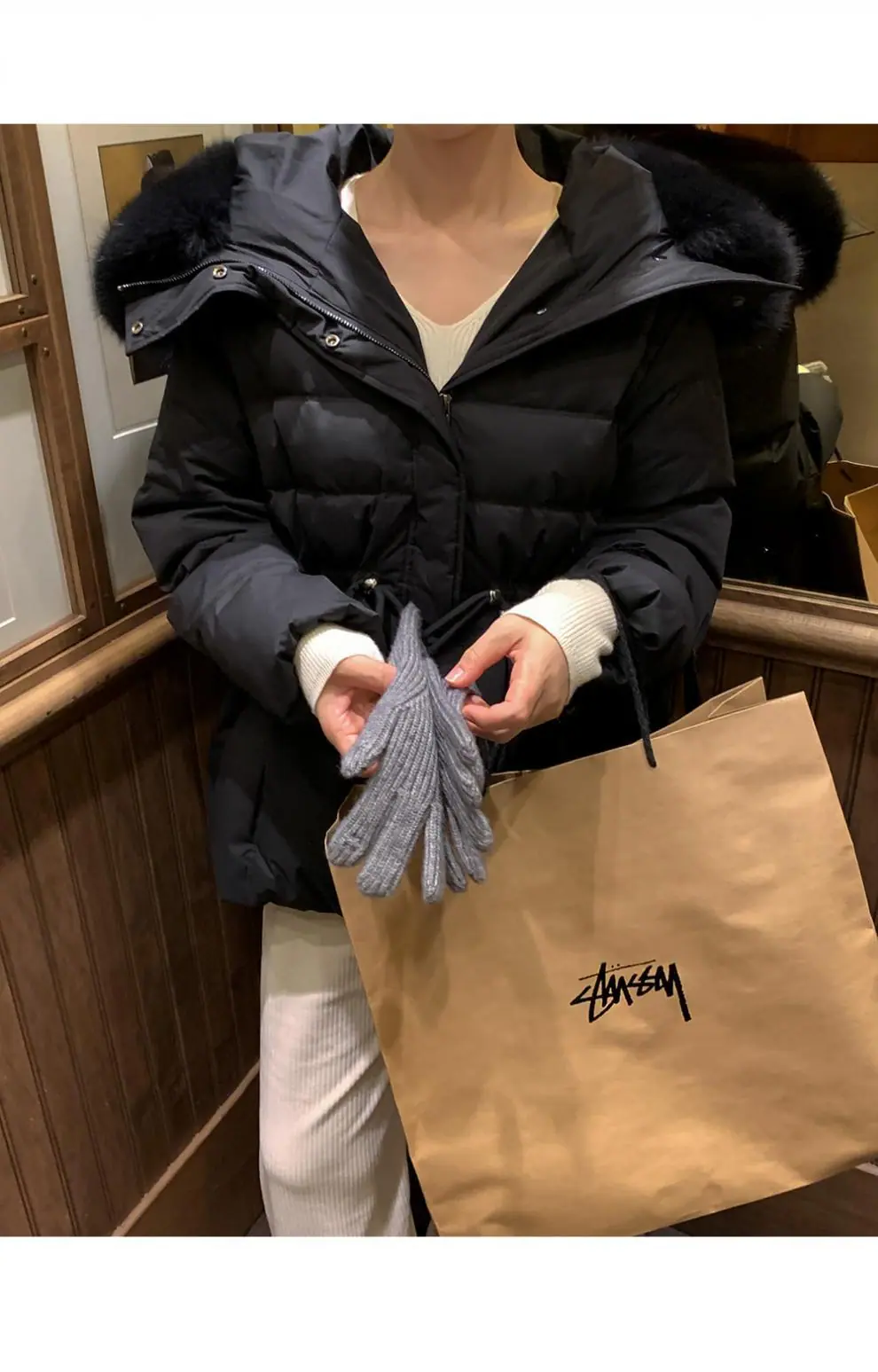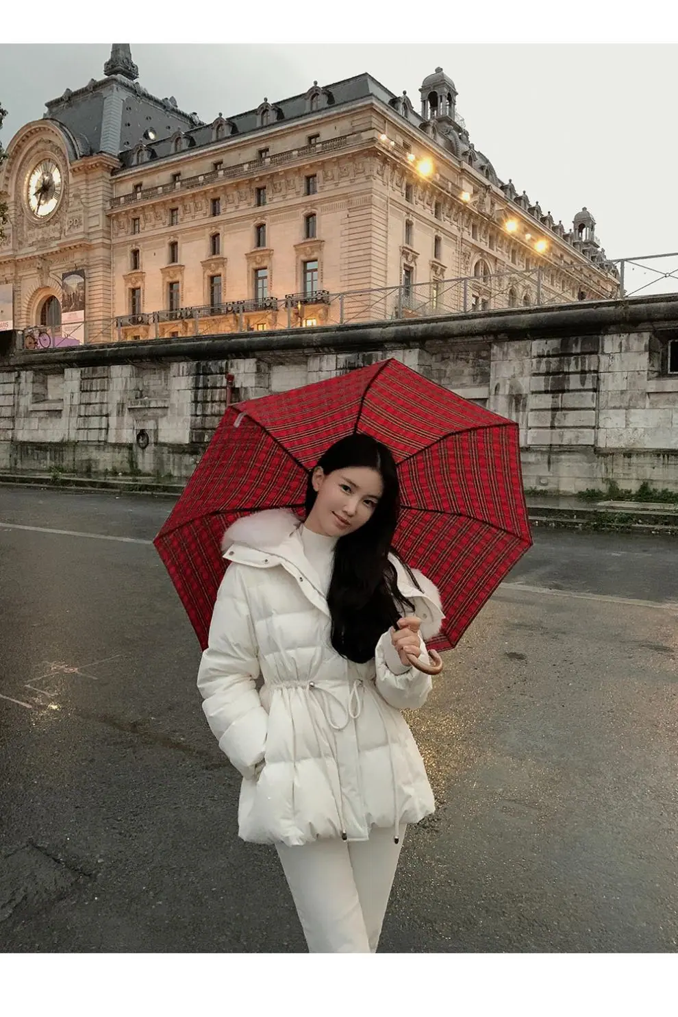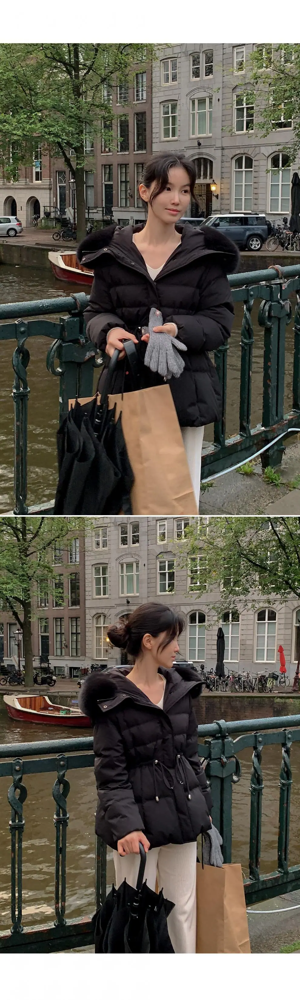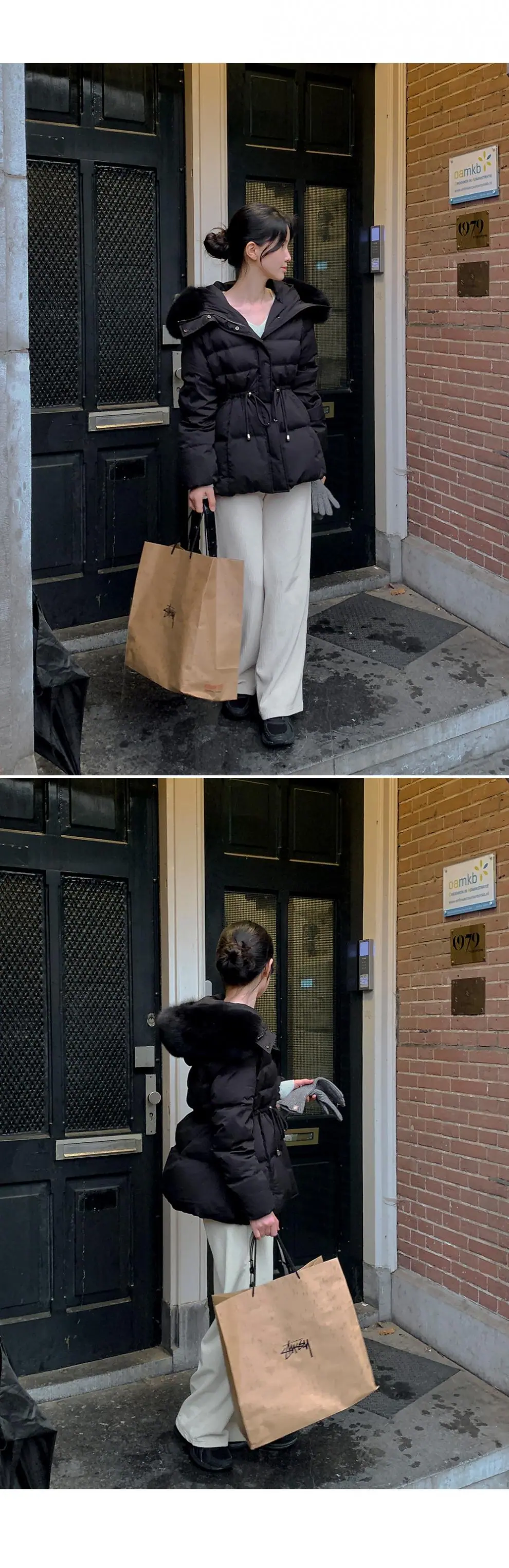 Chaqueta abrigo de algodón coreano de alta gama con capucha, cremallera, cuello grande de piel con cordón ajustable, versión coreana