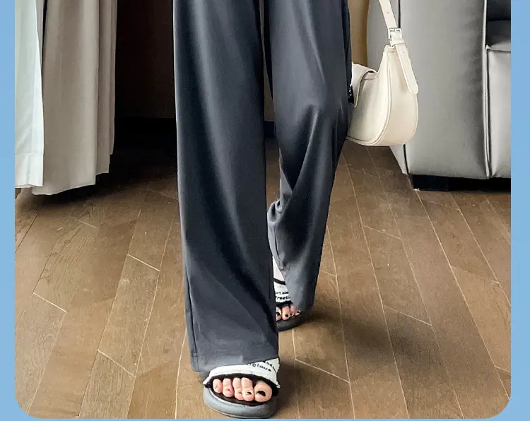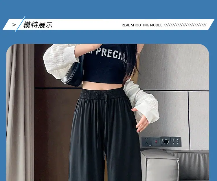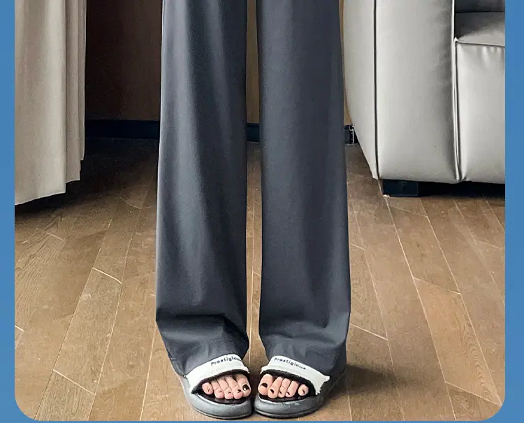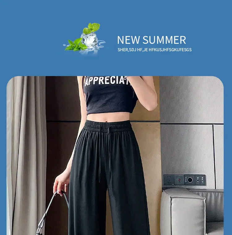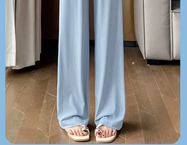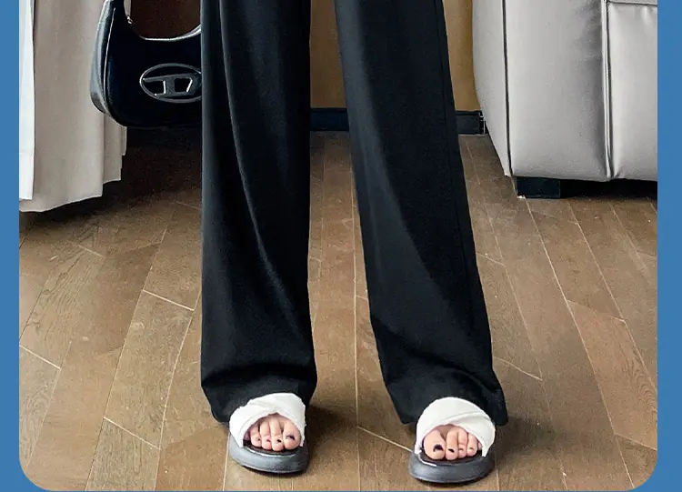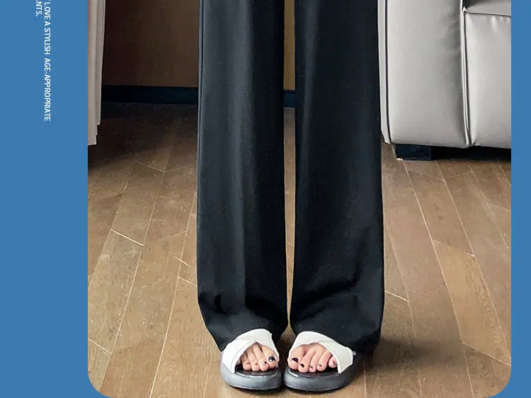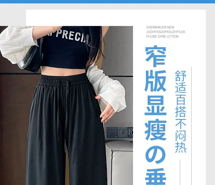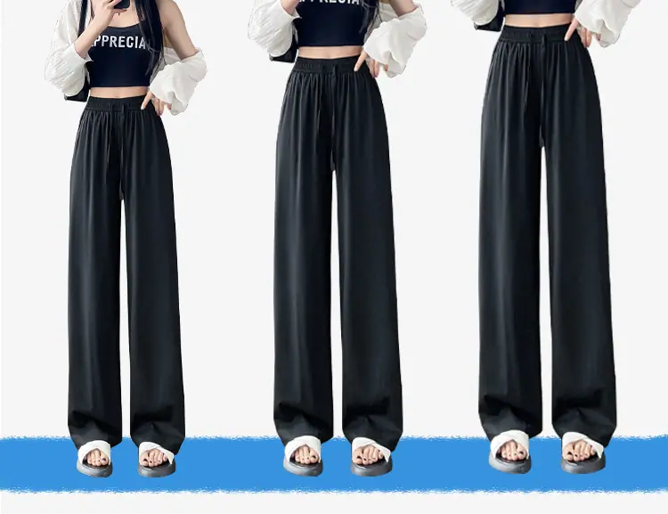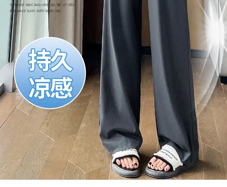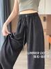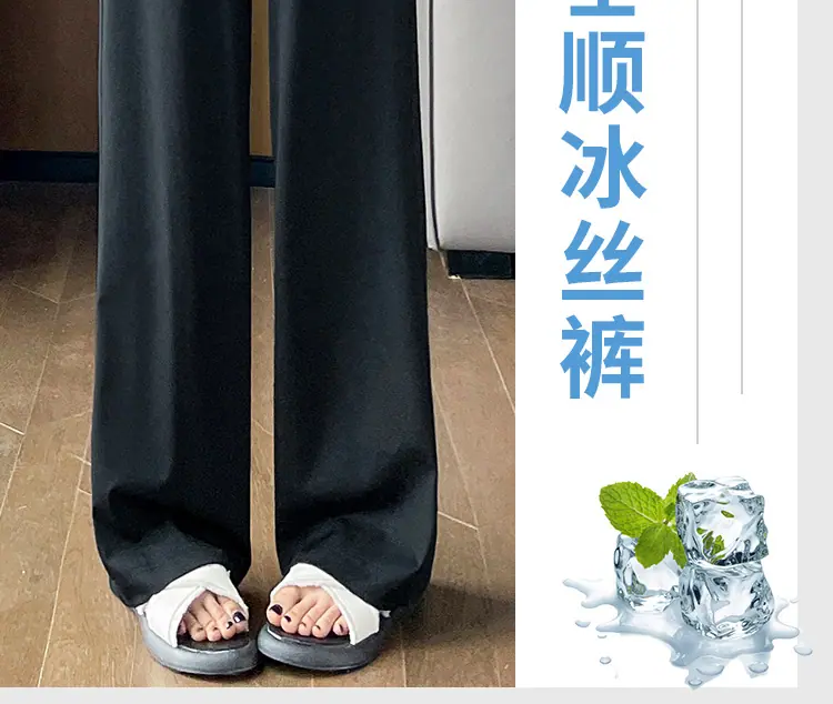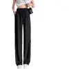 Pantalones de Pierna Ancha de Seda Helada para Mujer 2025 Nuevo Verano Delgados Versión Estrecha Dosis Recta Negro Casual Pantalones de Mujer