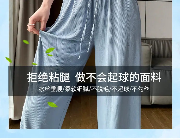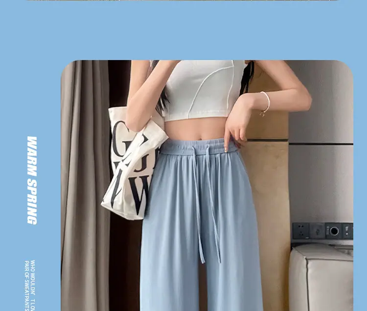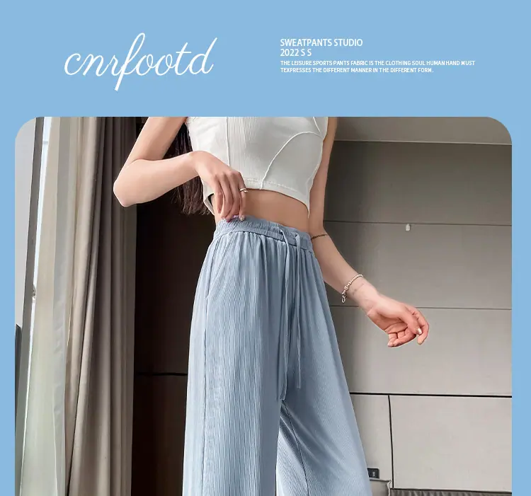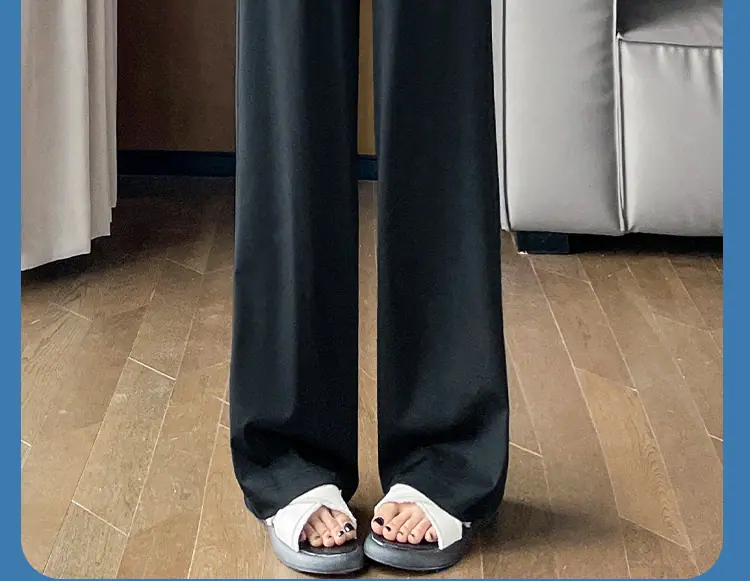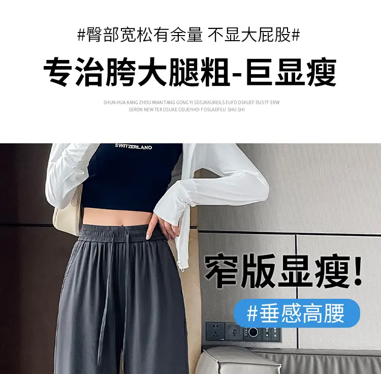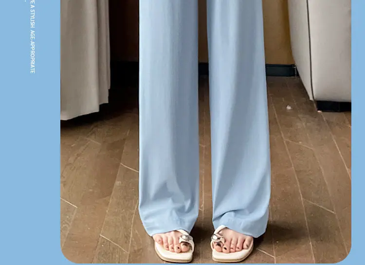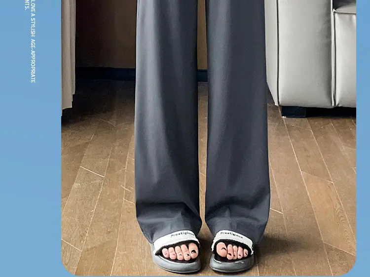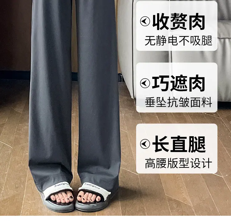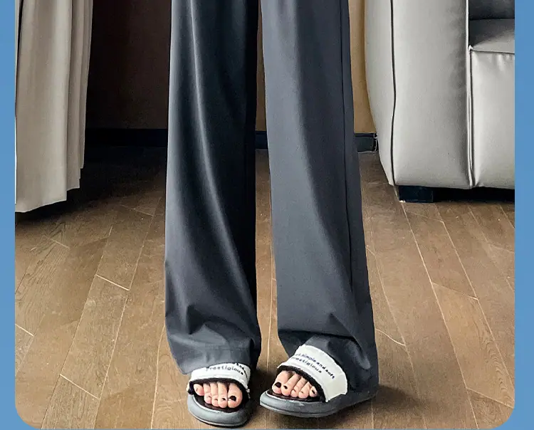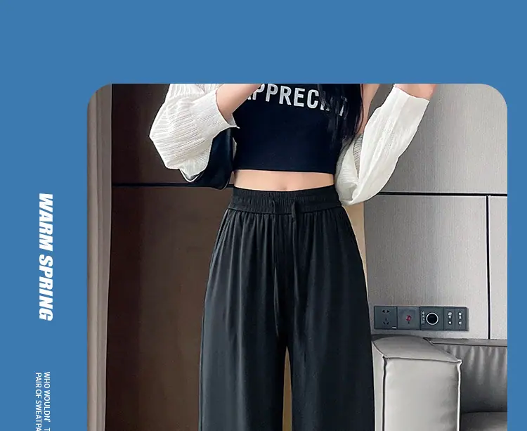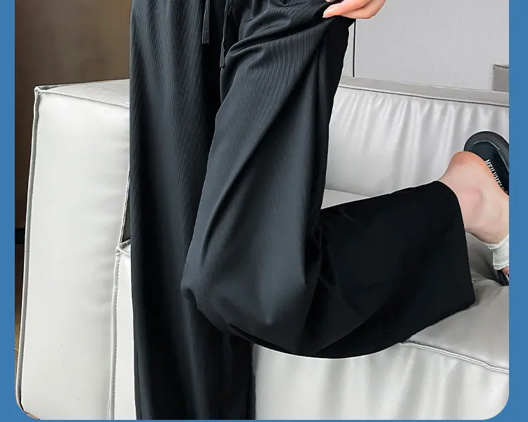 Pantalones de Pierna Ancha de Seda Helada para Mujer 2025 Nuevo Verano Delgados Versión Estrecha Dosis Recta Negro Casual Pantalones de Mujer