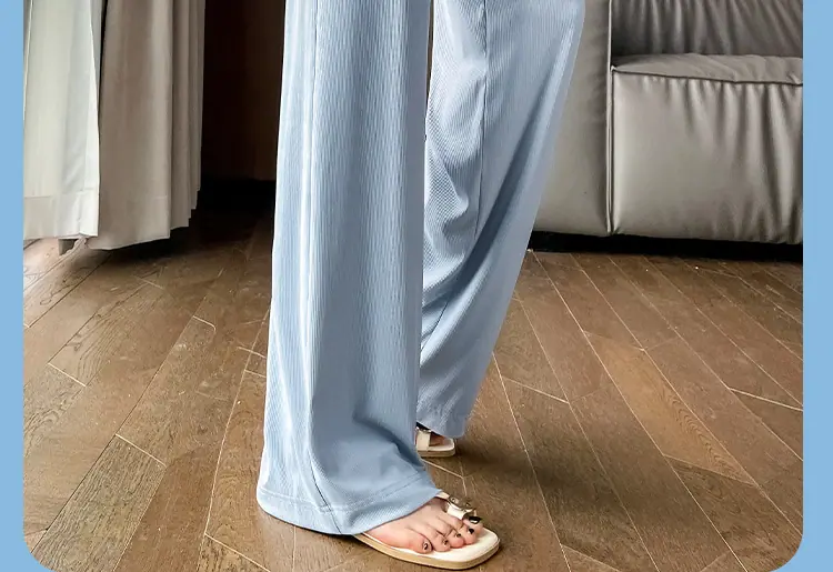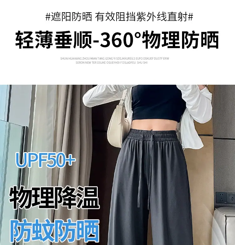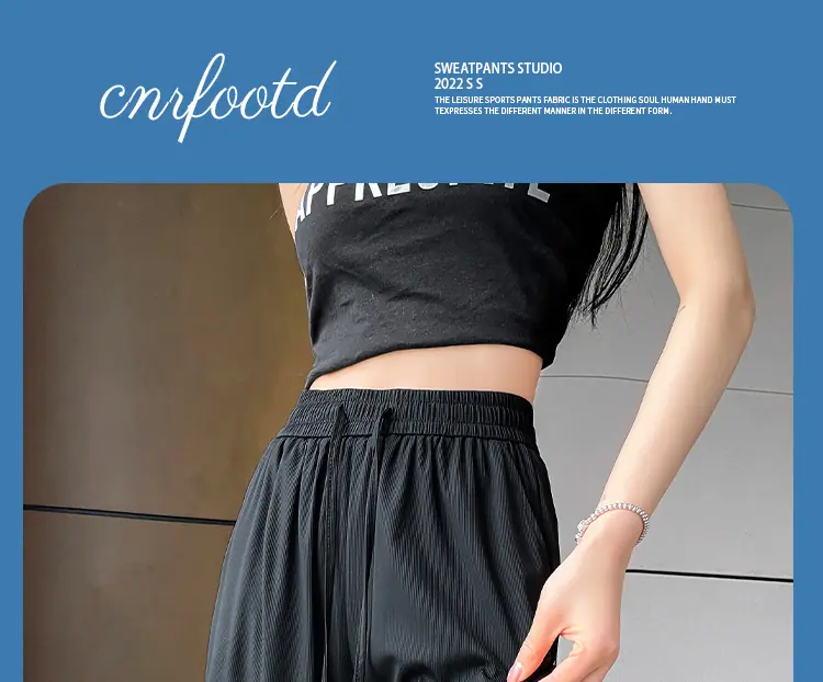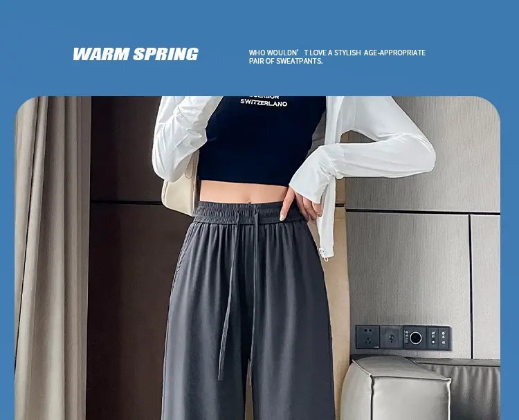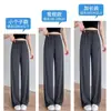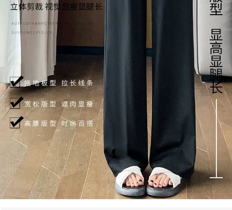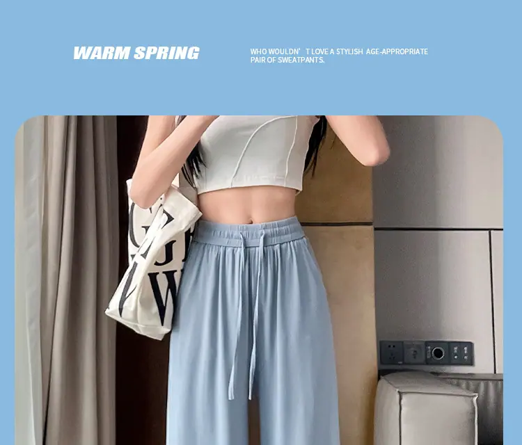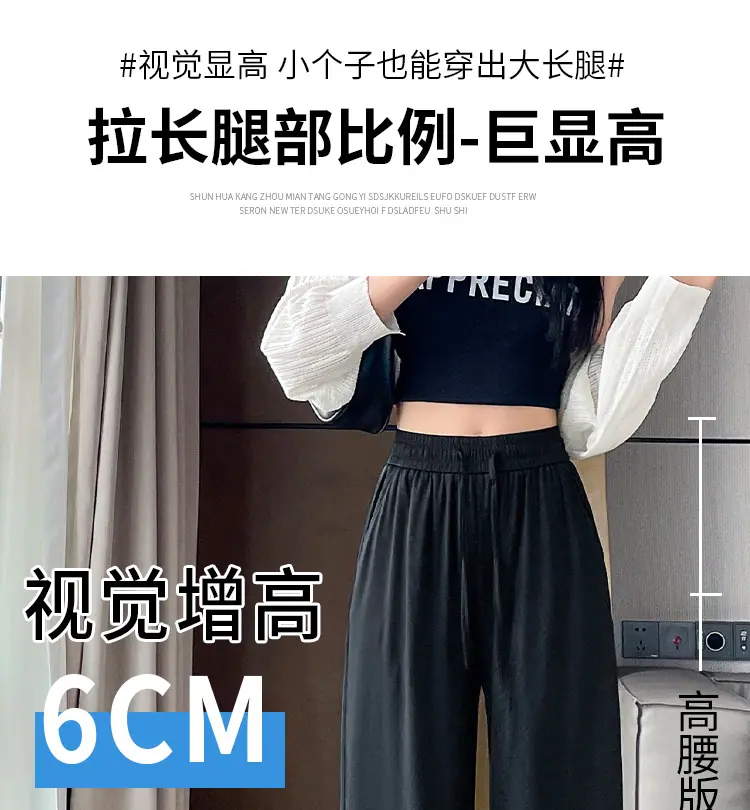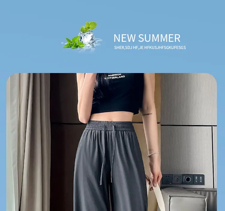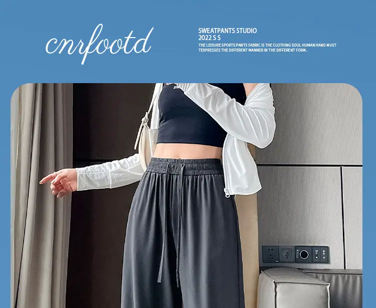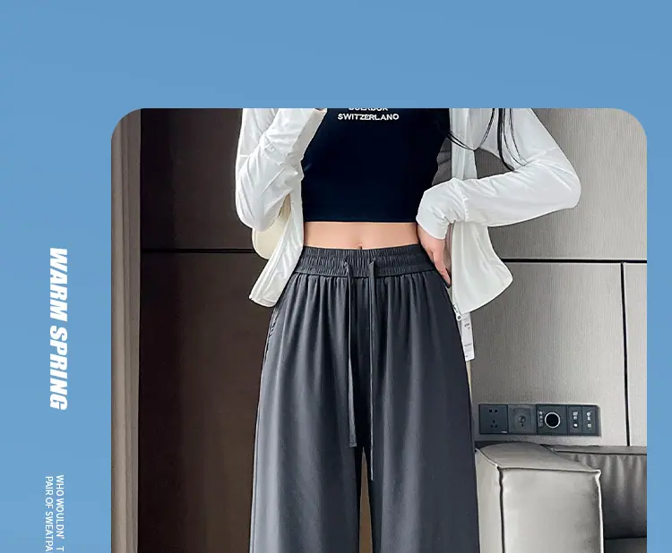 Pantalones de Pierna Ancha de Seda Helada para Mujer 2025 Nuevo Verano Delgados Versión Estrecha Dosis Recta Negro Casual Pantalones de Mujer