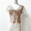 Camiseta Sexy de Manga Corta con Cuello en V Estilo Americano para Mujer Otoño Nuevo Diseño Adelgazante Top de Tirantes