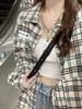 Camisa a Cuadros Estilo Retro Americano Primavera/Verano 2025 para Mujer, Cardigan Casual Versátil Holgado de Manga Larga con Cuello de Solapa Tendencia