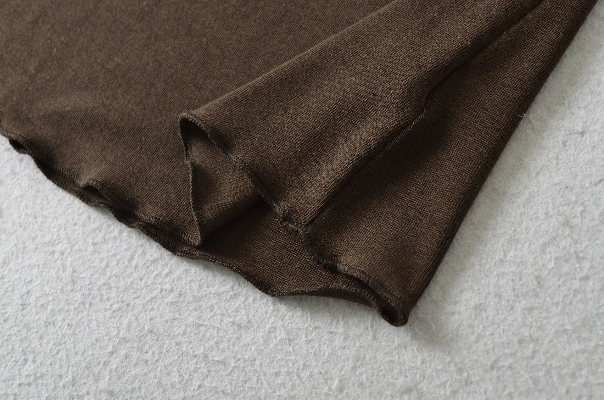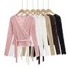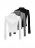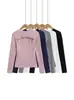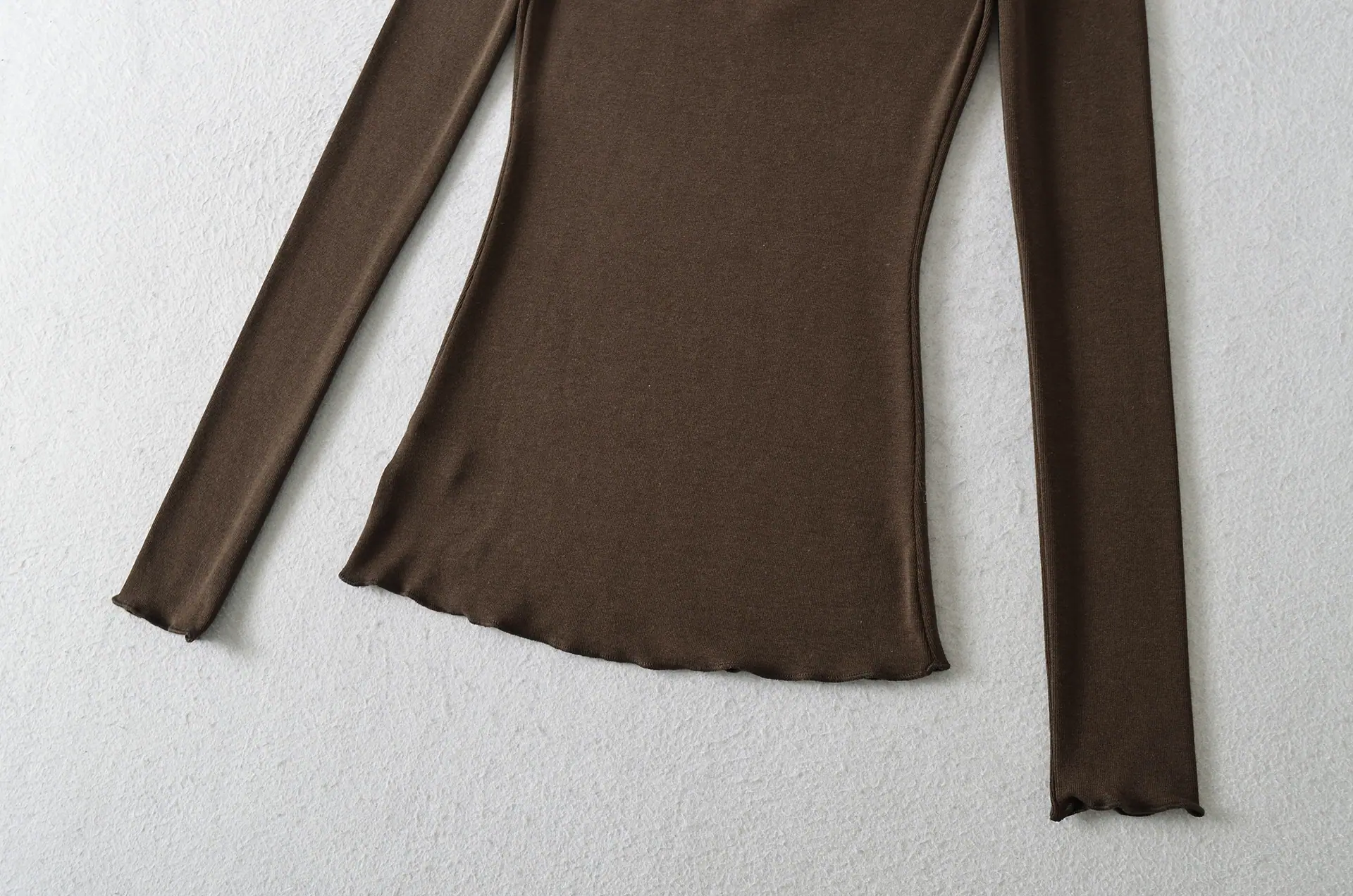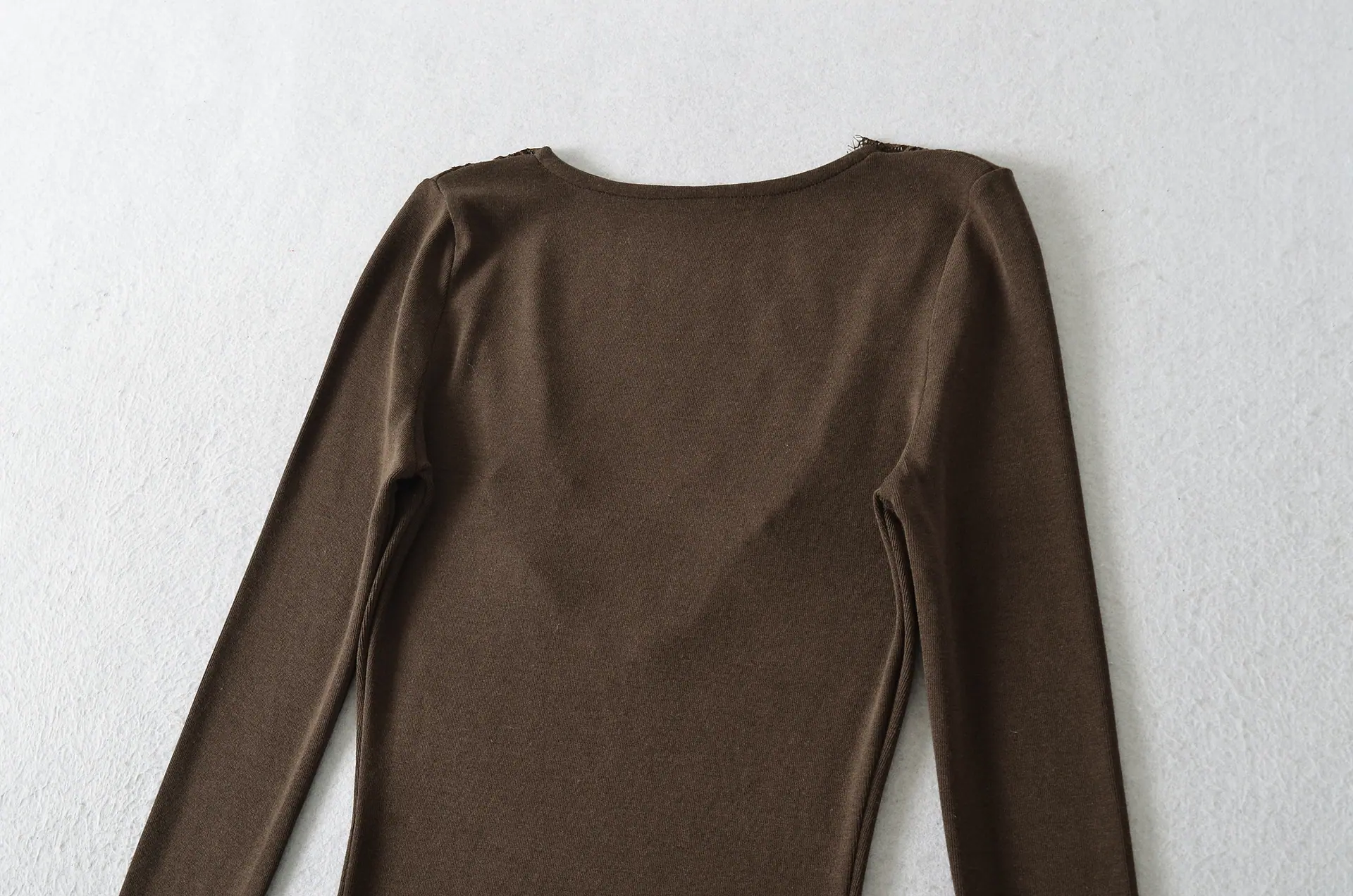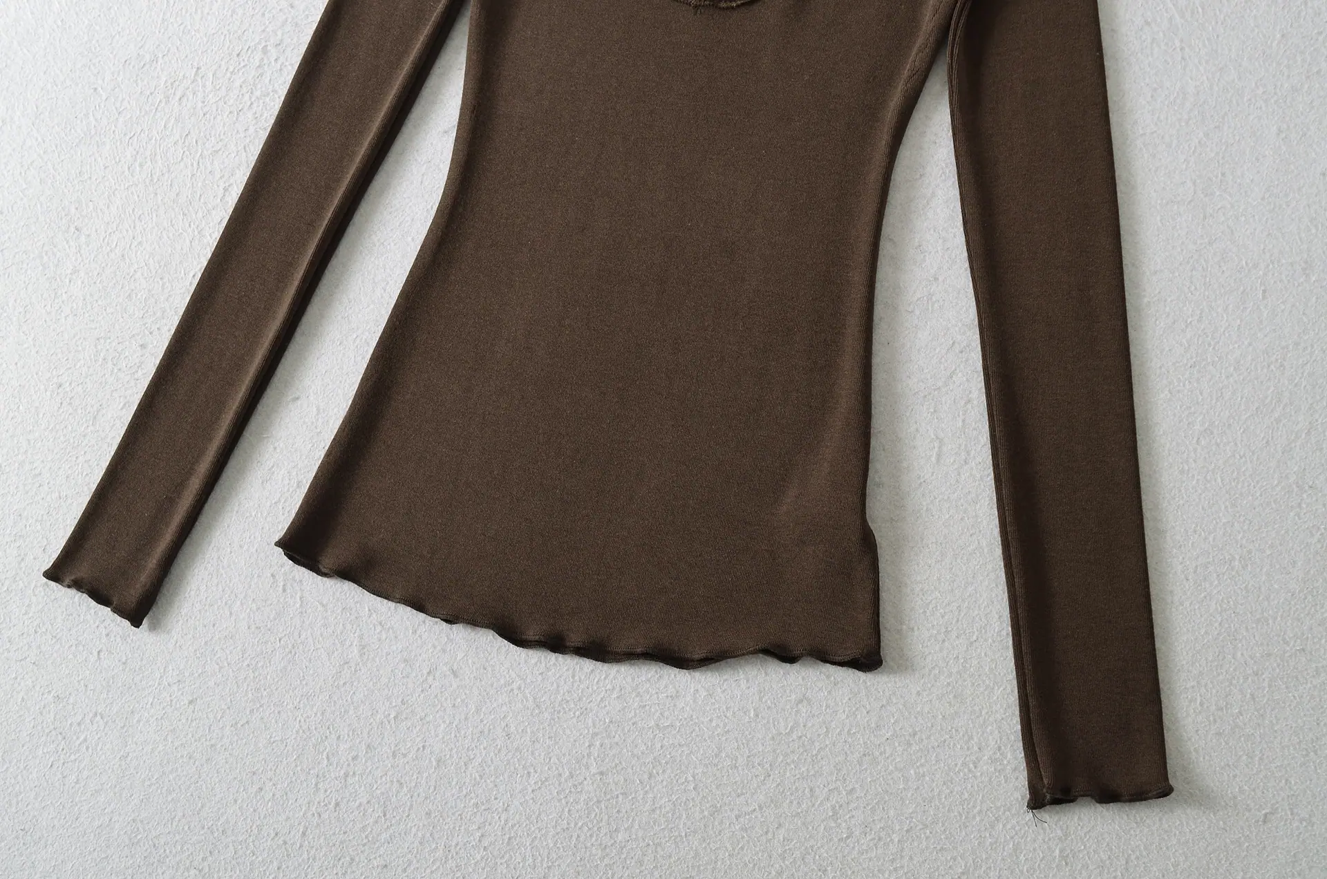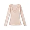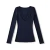 AP25590-25 Otoño Nuevo Americano Deseo Puro Chica Caliente Sexy Cuello en V Encaje Recorte Manga Larga Ajustado Camiseta