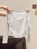 Compra Camiseta de Manga Larga para Mujer de Primavera y Otoño 100% Algodón Camiseta Básica Petite Cuello Cuadrado Corto Cintura Fruncida Top Interior de Manga Larga al por mayor en Joom.pro