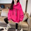 Otoño e Invierno Moda Chic Sencillo Estampado de Letras Diseño Falso de Dos Piezas Oversize con Forro Polar Grueso Sudadera con Capucha