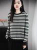 Suéter de Rayas de Color Contrastante para Mujer, Holgado, Estilo Coreano, Nuevo para Otoño e Invierno, Delgado, de Lana Peinada, Camiseta Básica, Cuello Redondo