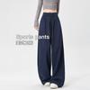 Pantalones de chándal grises estilo americano talla grande Otoño e Invierno Nuevos Holgados de Pierna Recta Cintura Alta Casual de Pierna Ancha