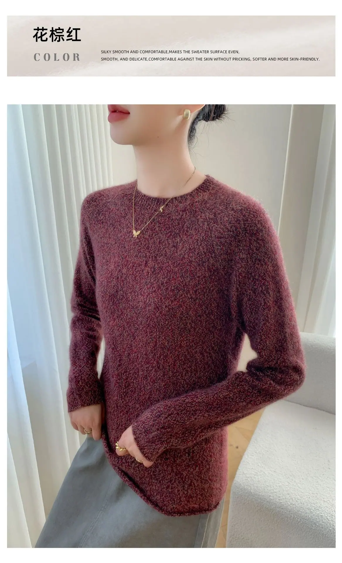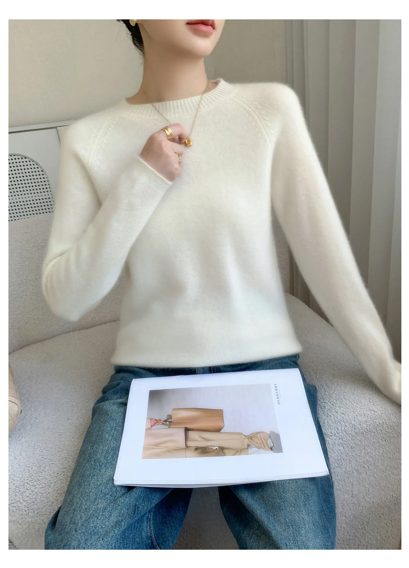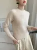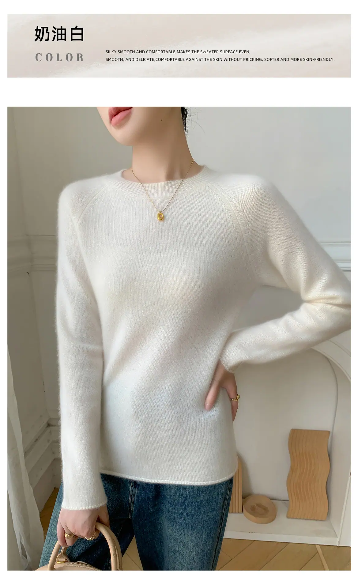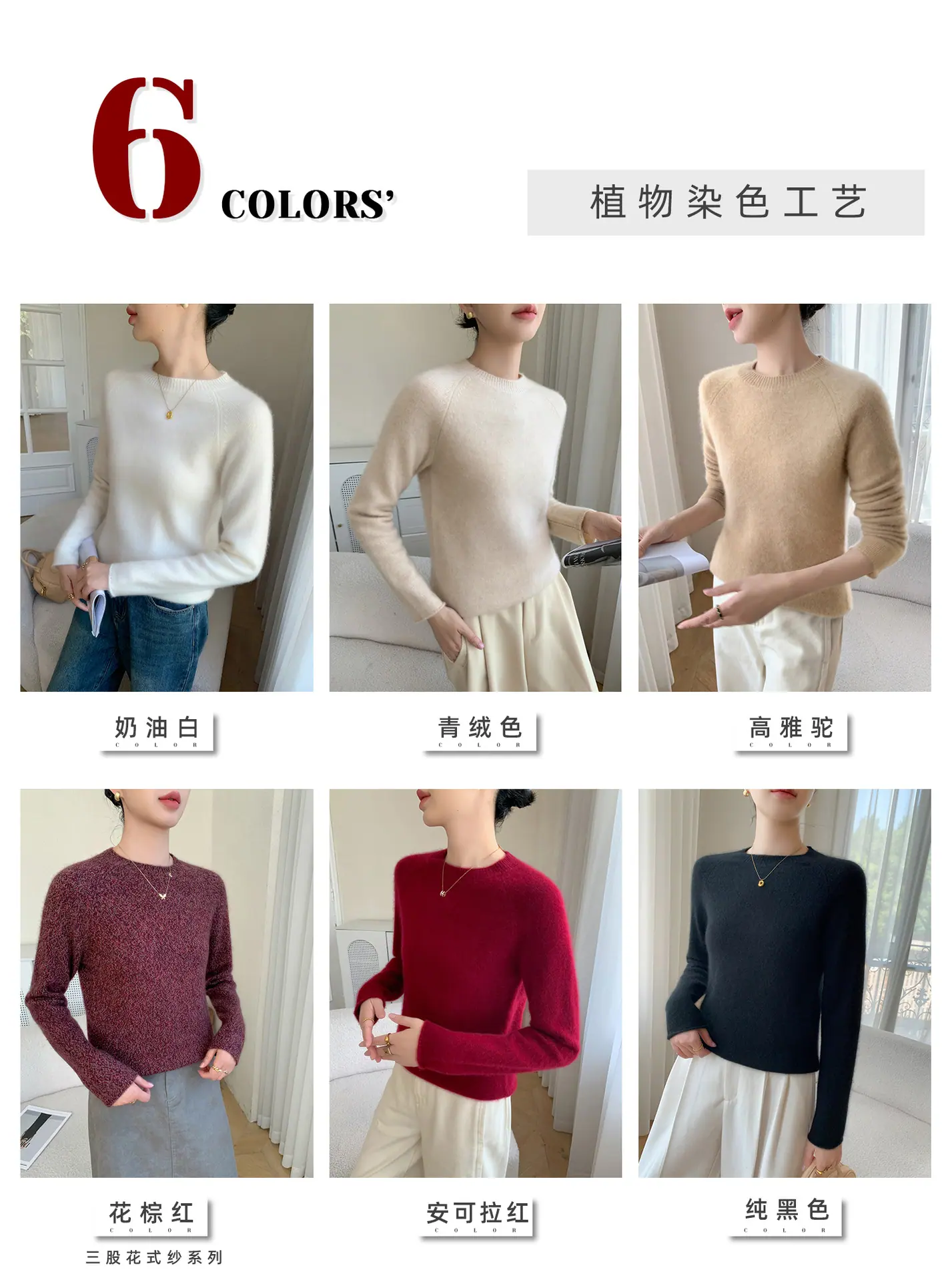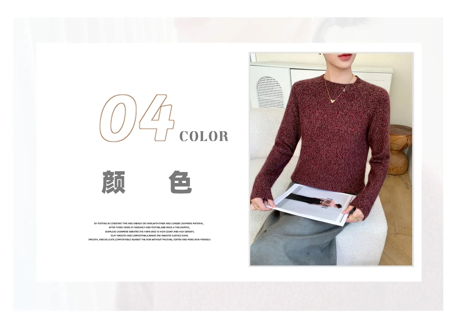 2025 Otoño/Invierno Nuevo Suéter de Cachemira de Color Sólido para Mujer Cuello Redondo Suéter Tejido Cálida Capa Interior Camiseta Base Top
