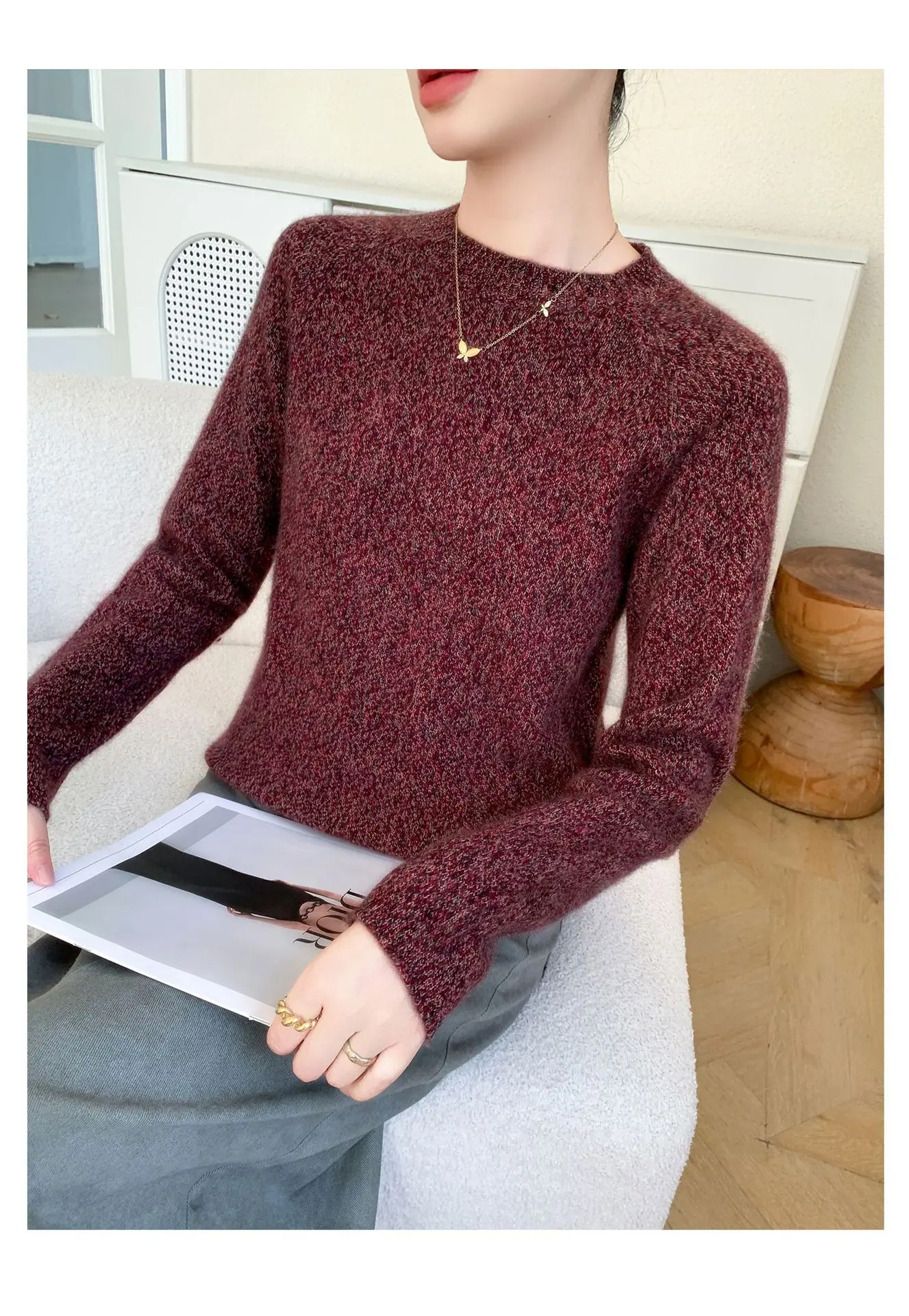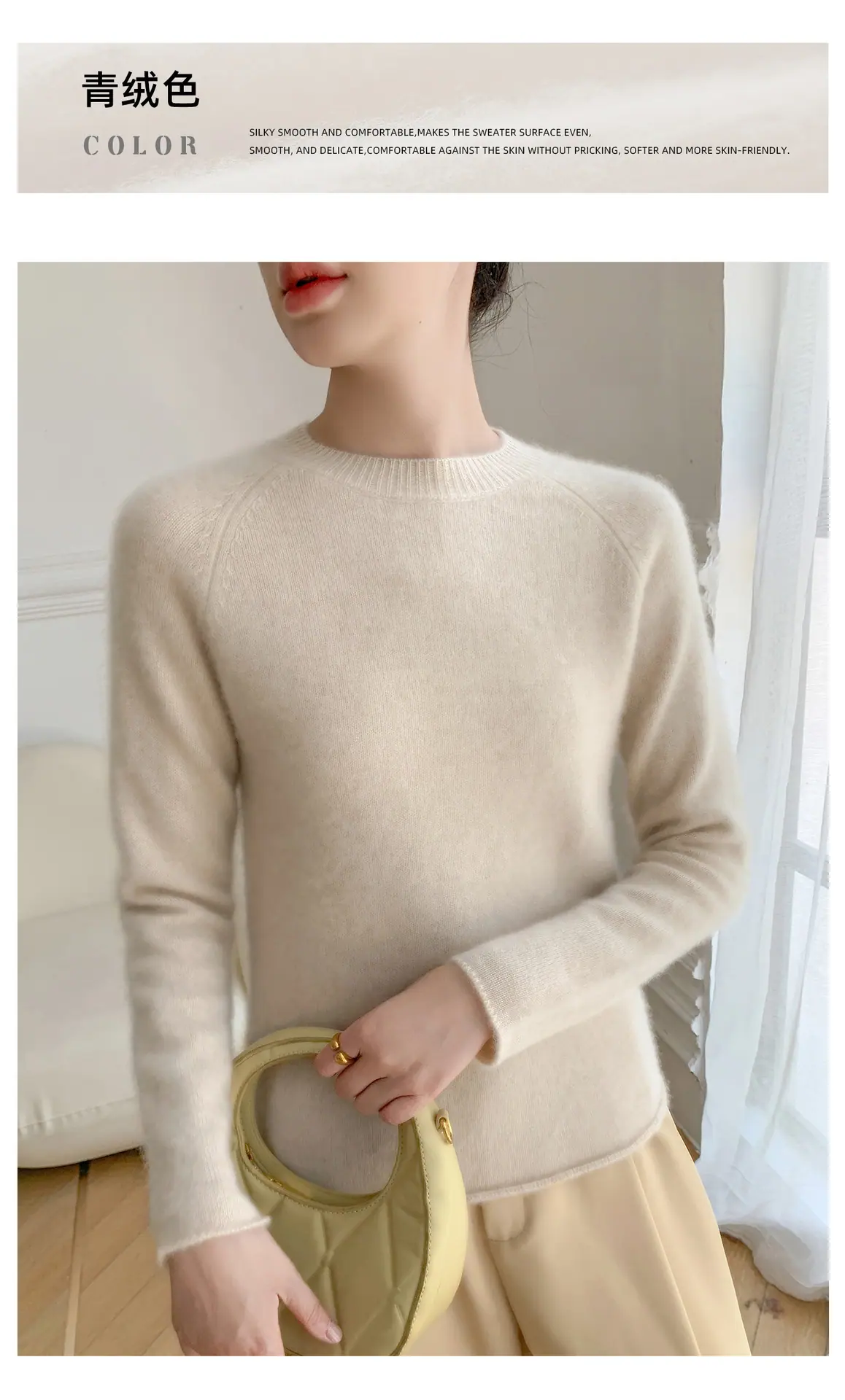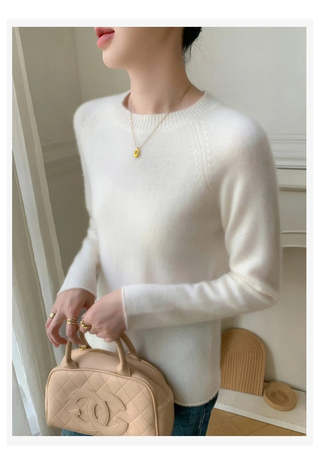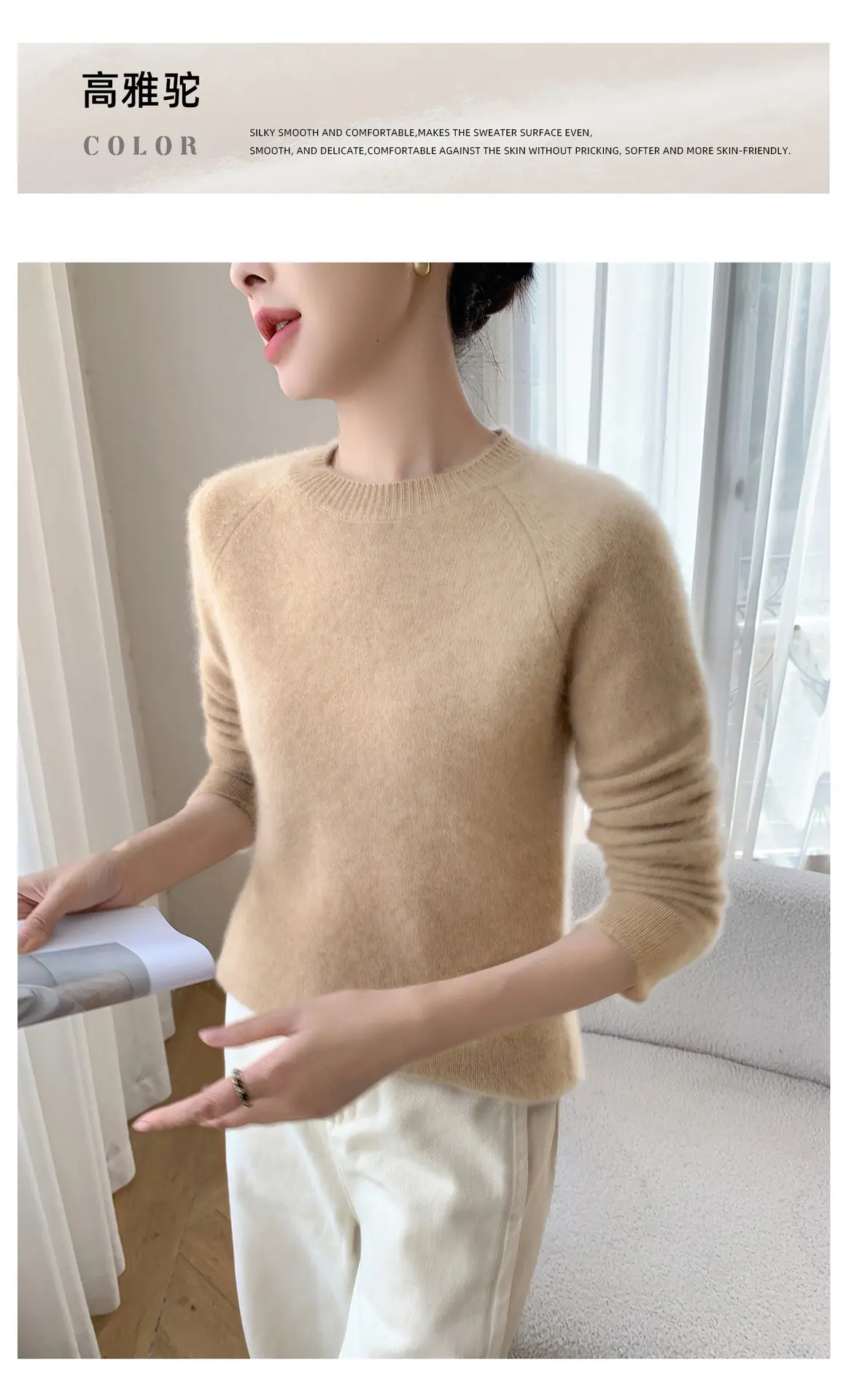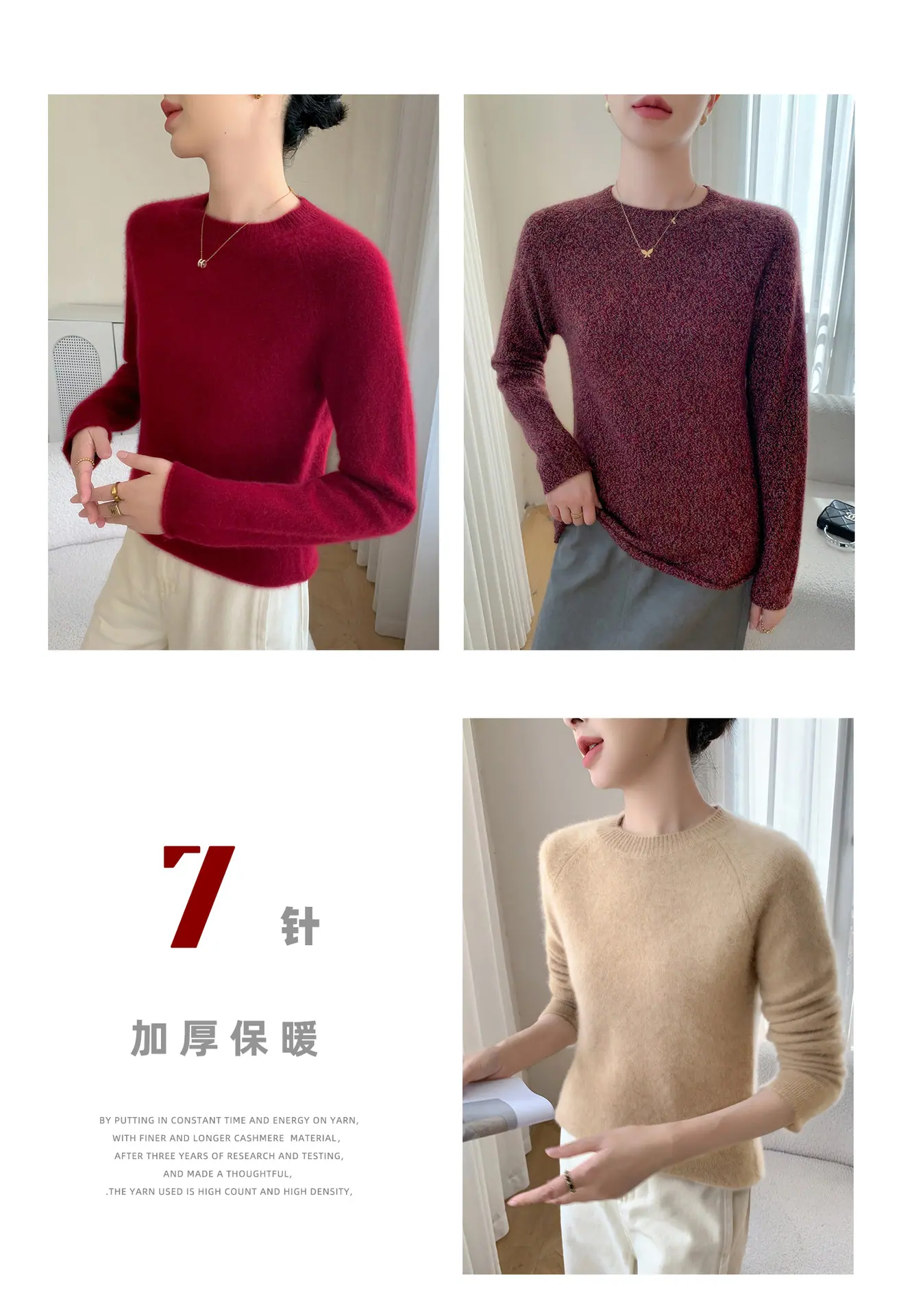 2025 Otoño/Invierno Nuevo Suéter de Cachemira de Color Sólido para Mujer Cuello Redondo Suéter Tejido Cálida Capa Interior Camiseta Base Top