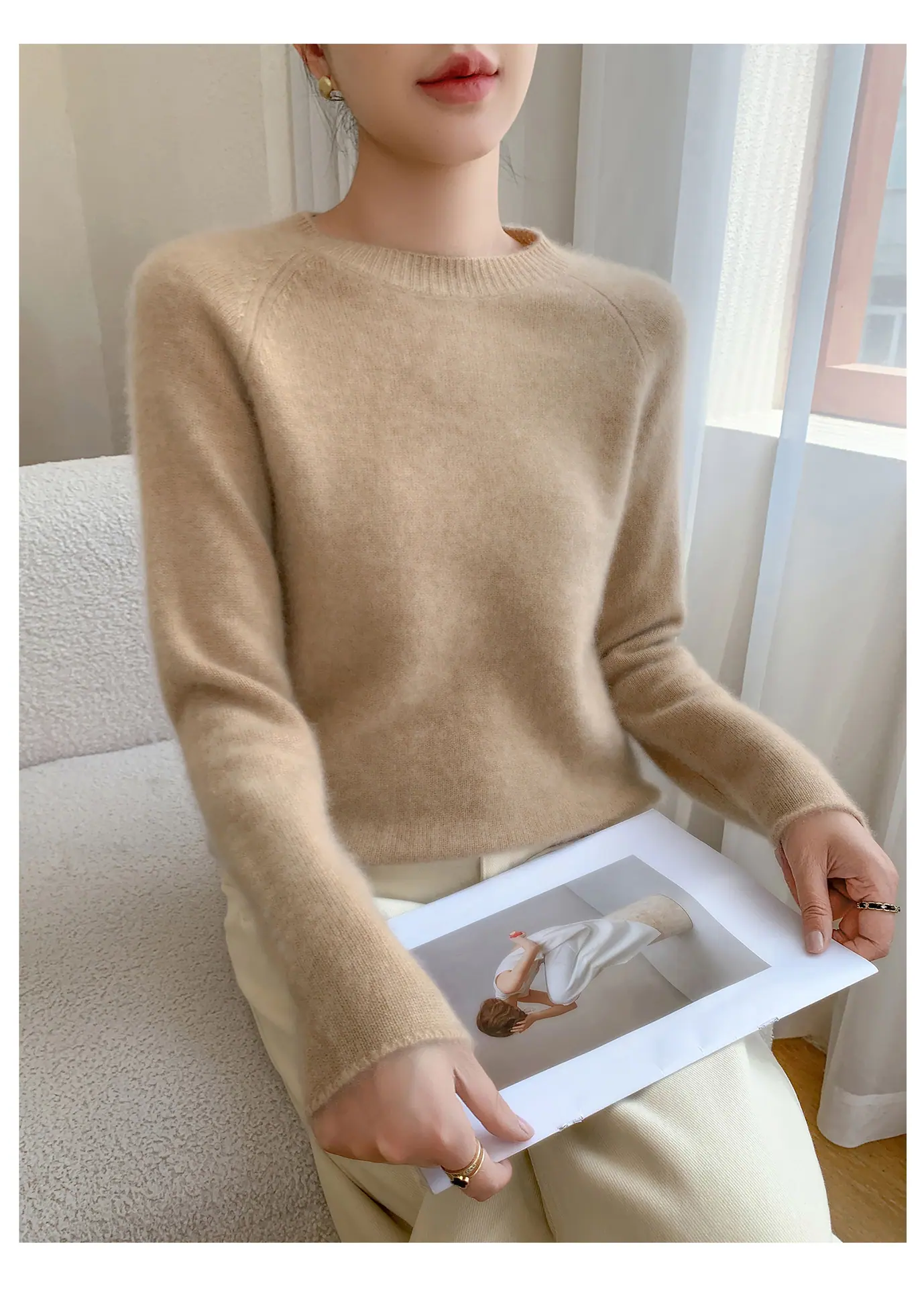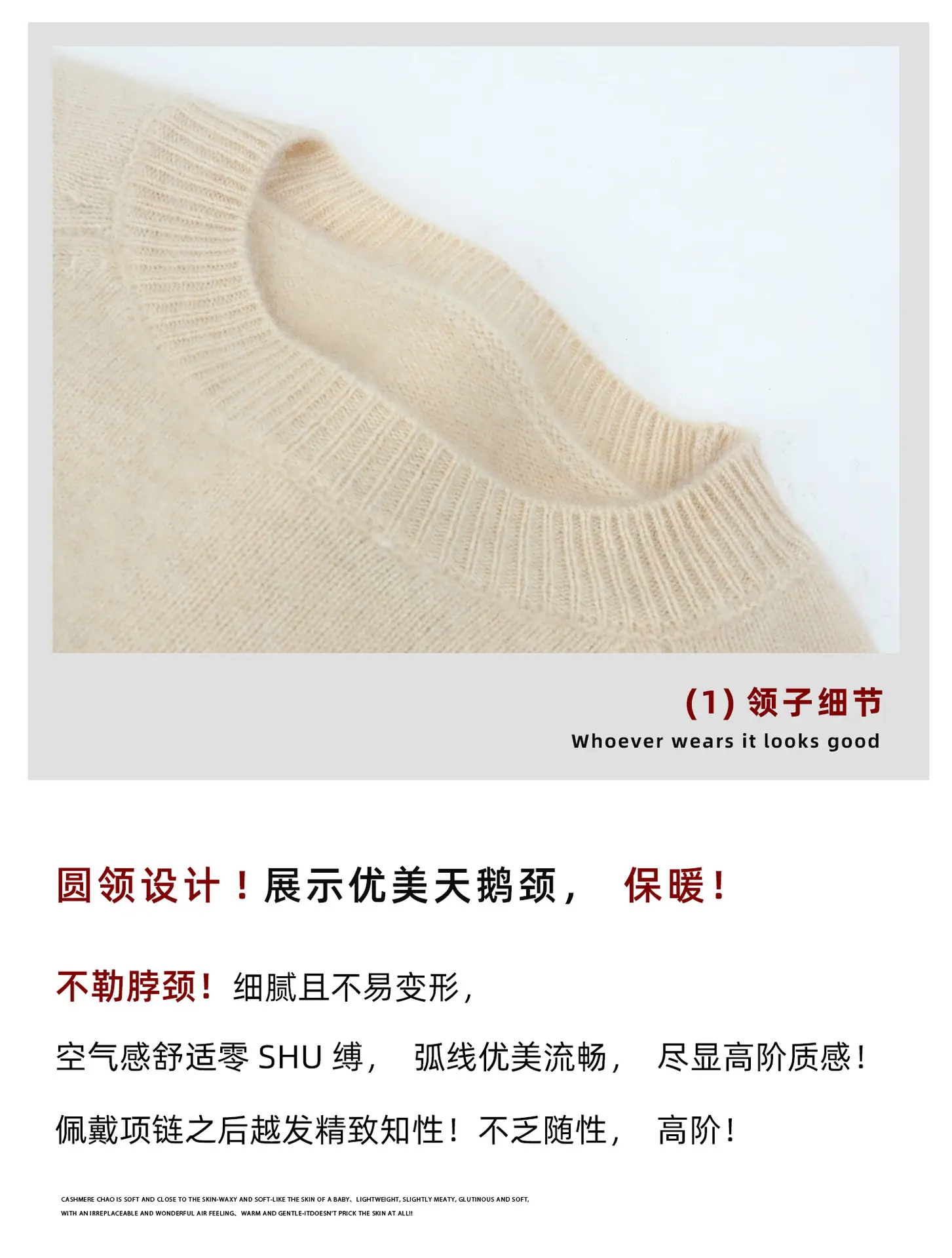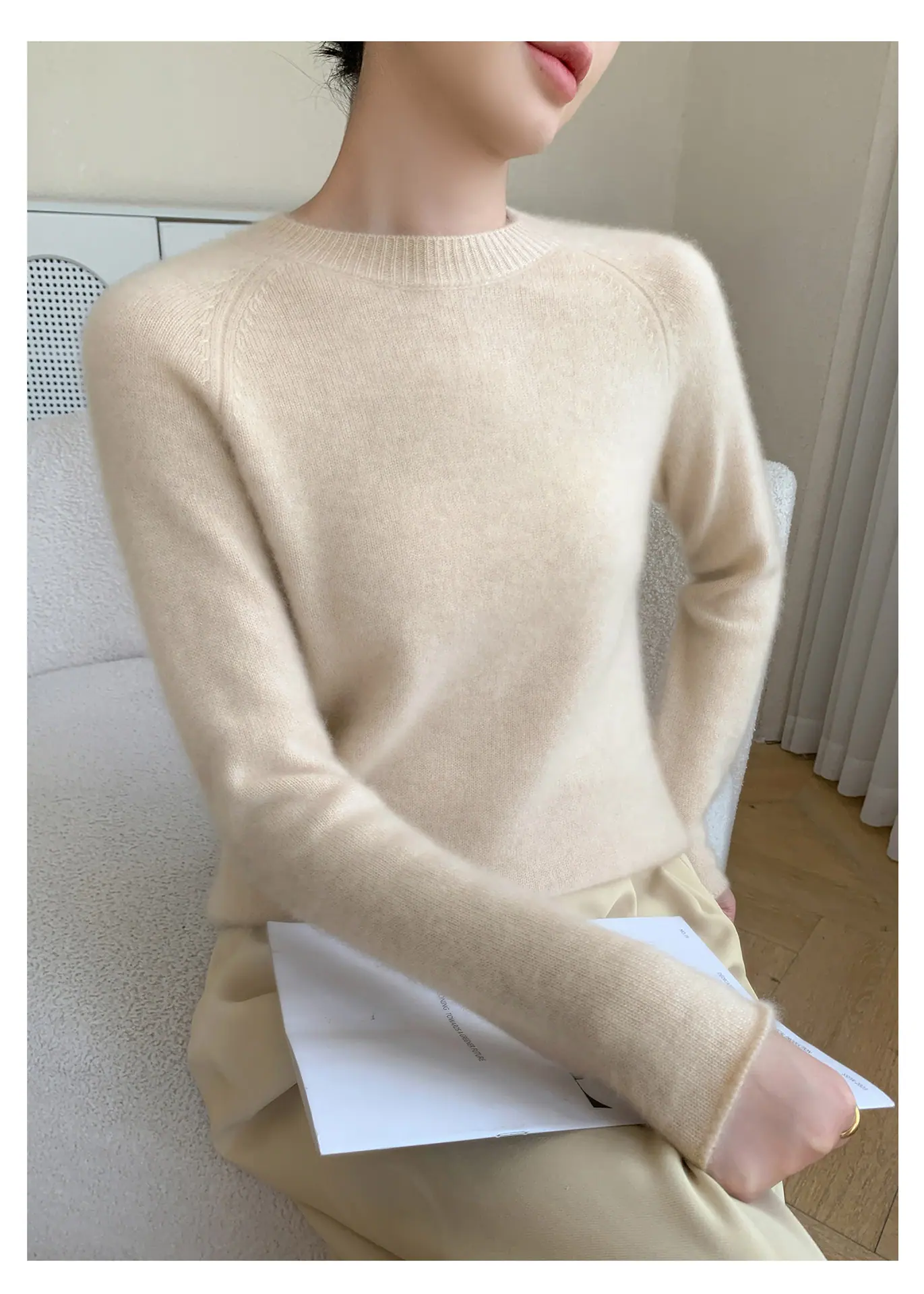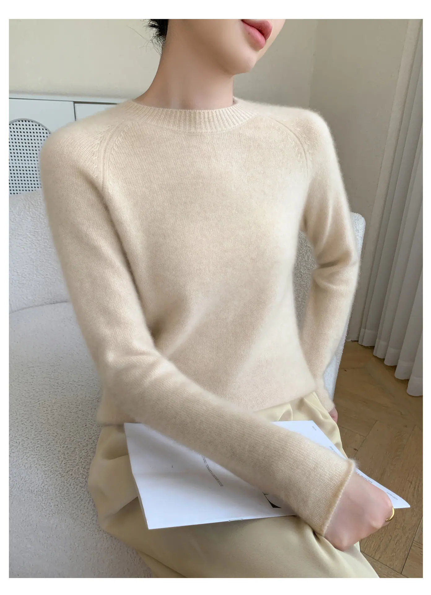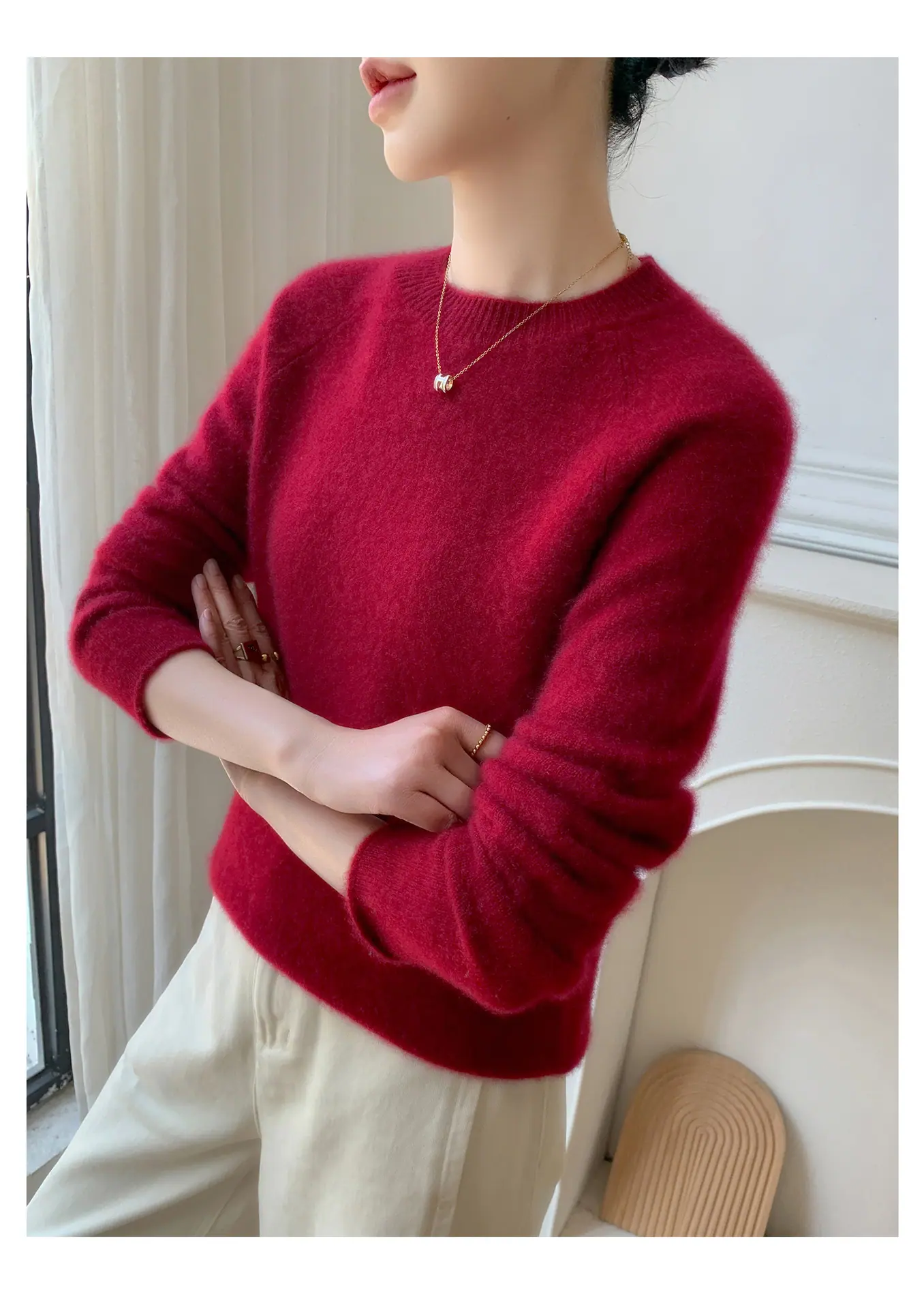 2025 Otoño/Invierno Nuevo Suéter de Cachemira de Color Sólido para Mujer Cuello Redondo Suéter Tejido Cálida Capa Interior Camiseta Base Top
