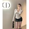Camiseta Irregular de Hombro U-Neck Chica Caliente Deseo Puro Otoño e Invierno Nuevo Top Delgado de Manga Larga