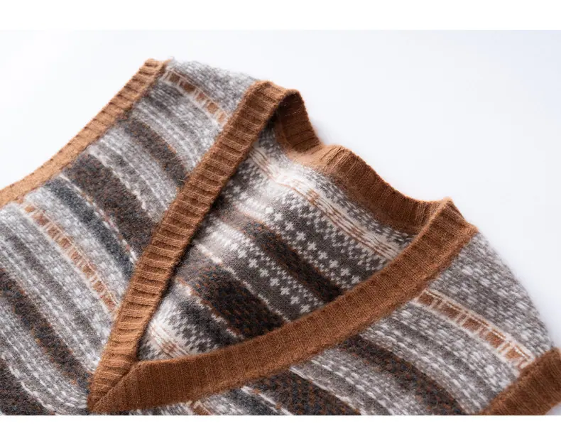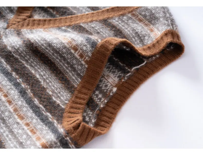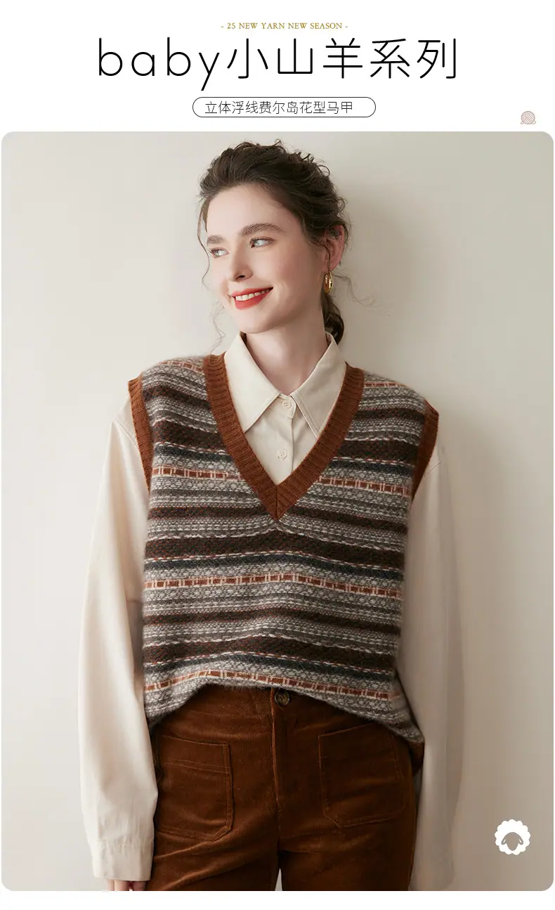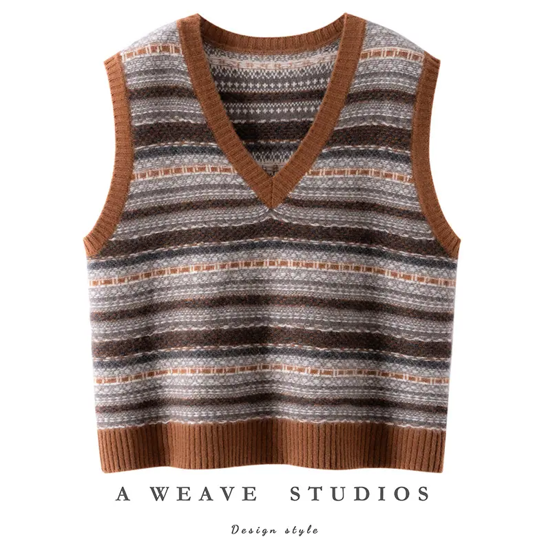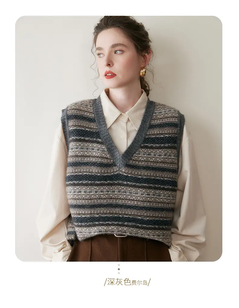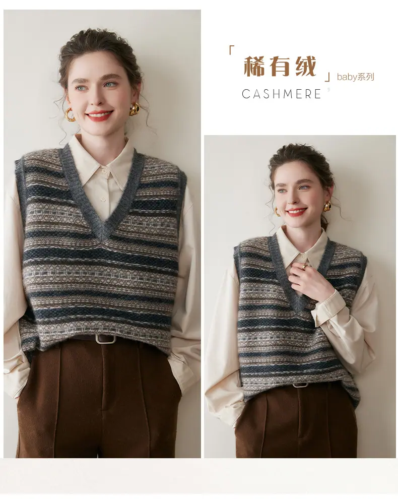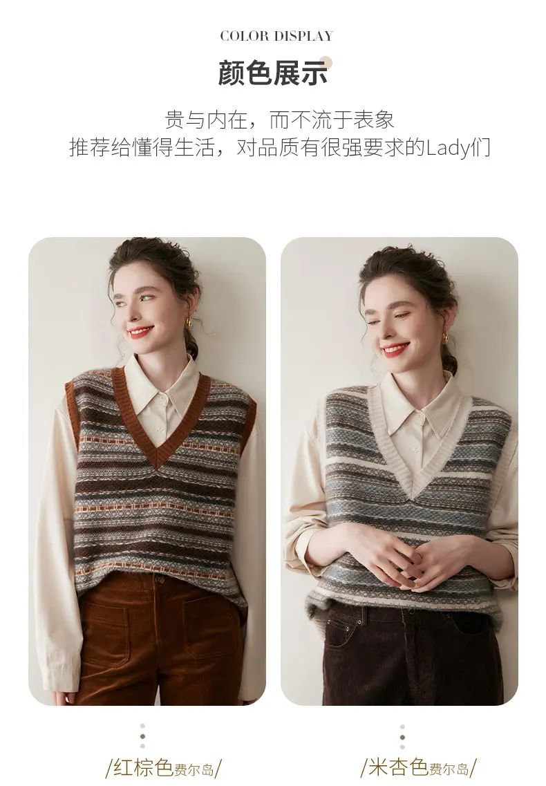 Chaleco Retro de Cachemira para Mujer Primavera y Otoño 2025 Suelto Cuello en V Versátil Bloque de Color Sin Mangas Jersey de Punto