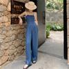 Mono de mezclilla con tirantes estilo coreano para mujer Verano Nuevo diseño Retro Pantalones de pierna ancha