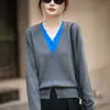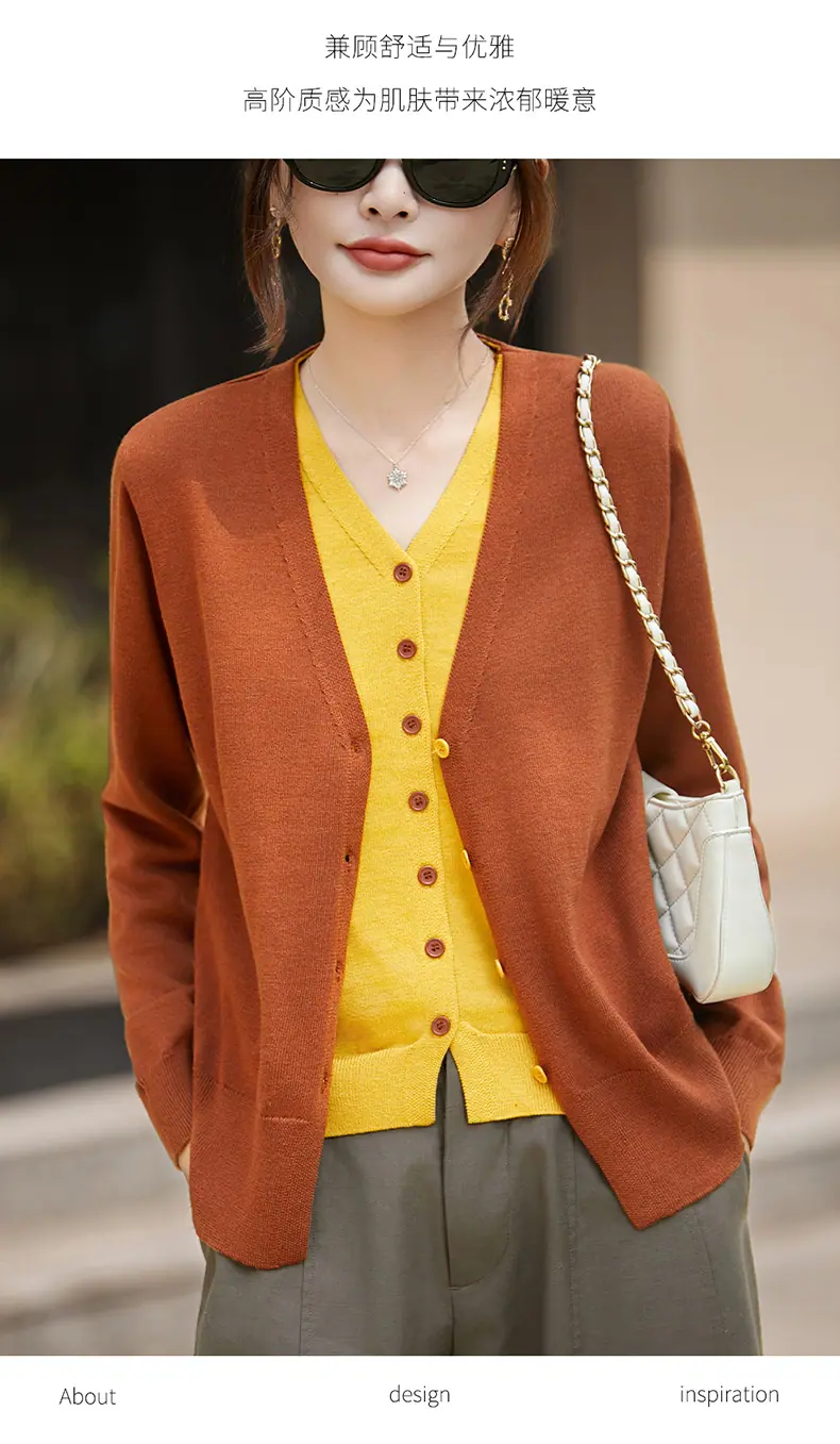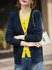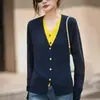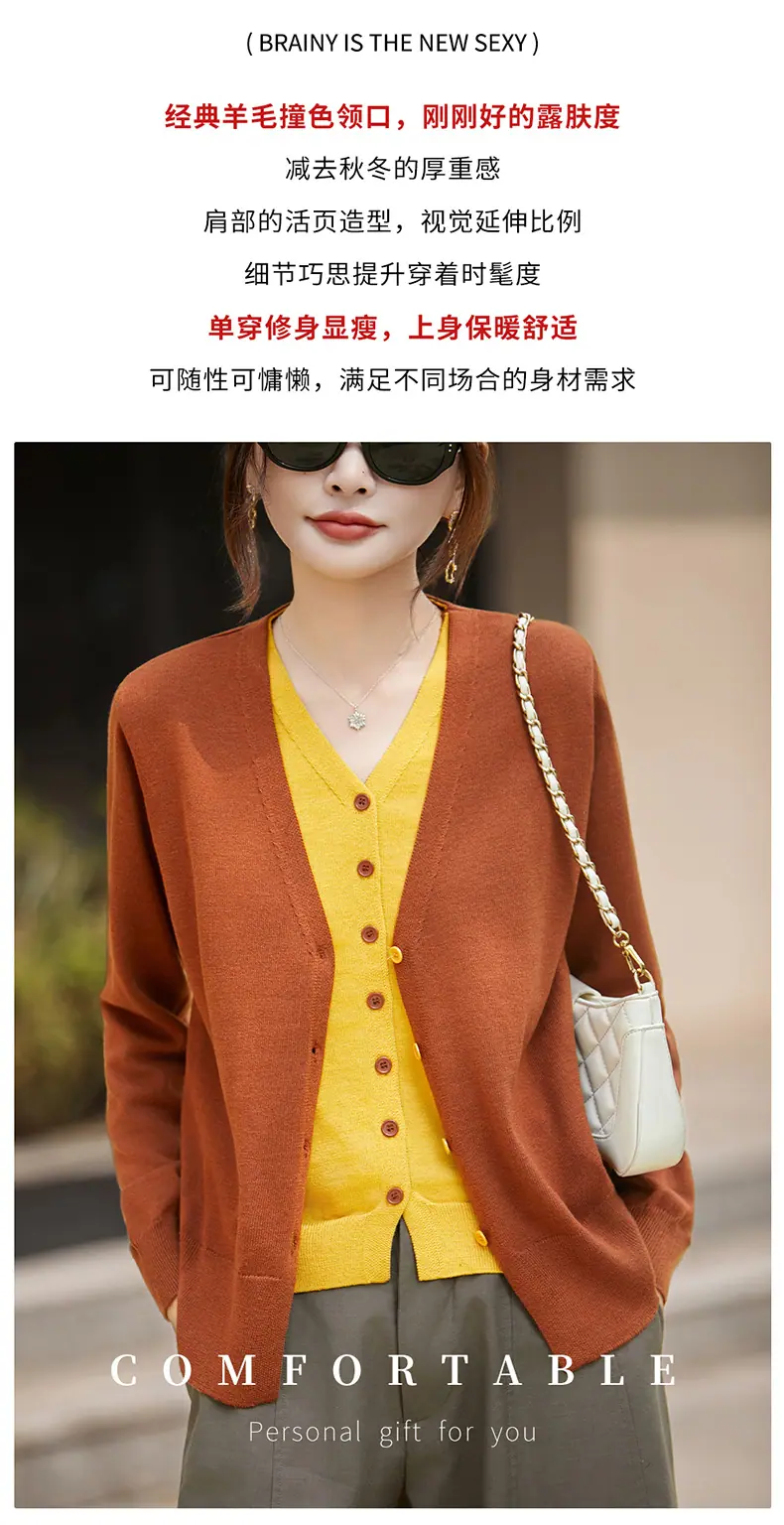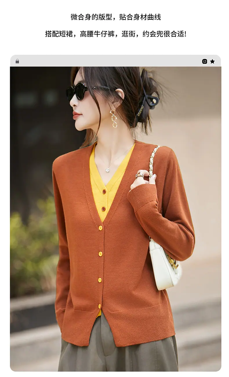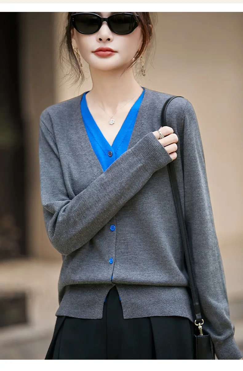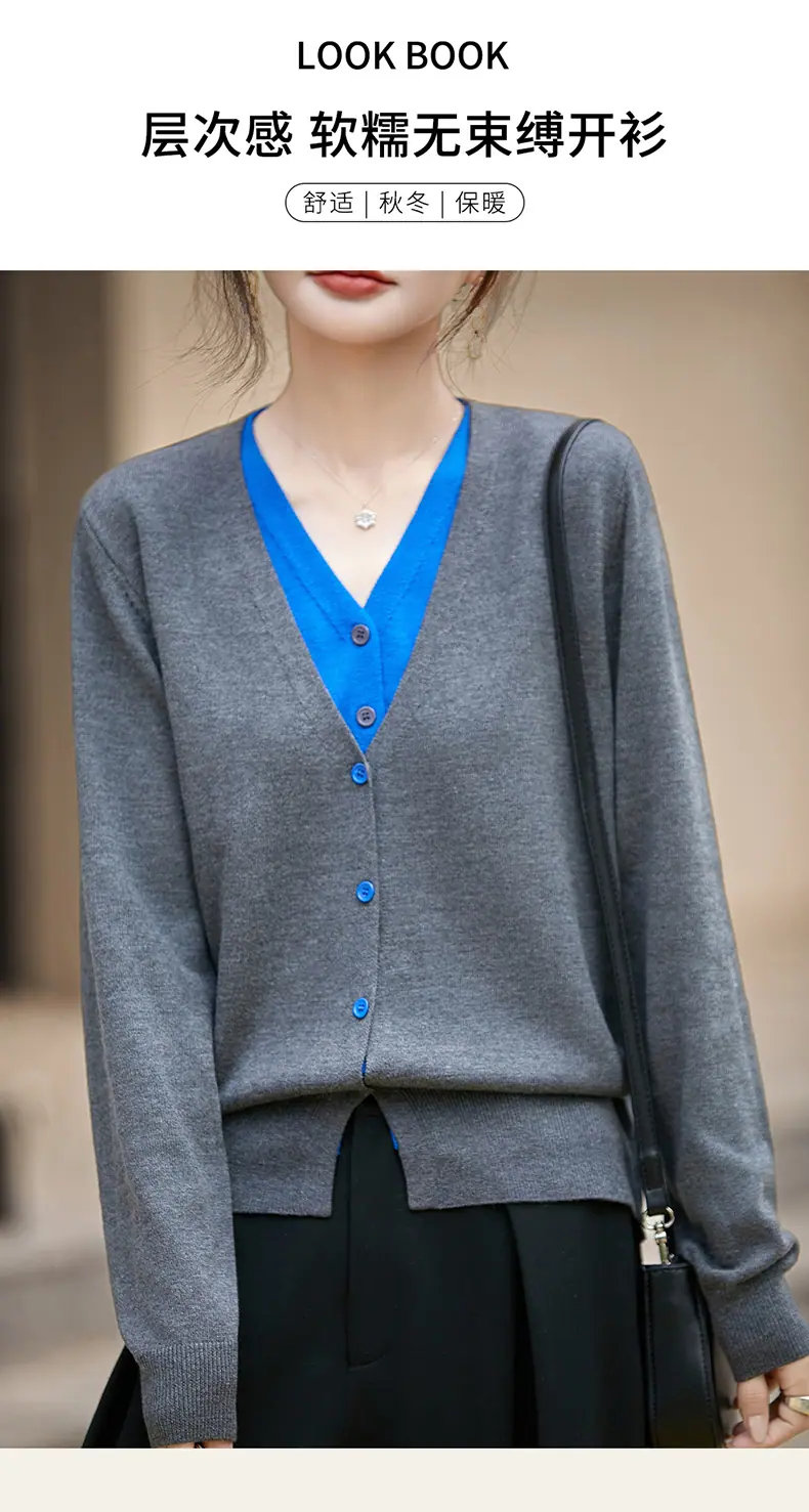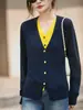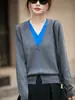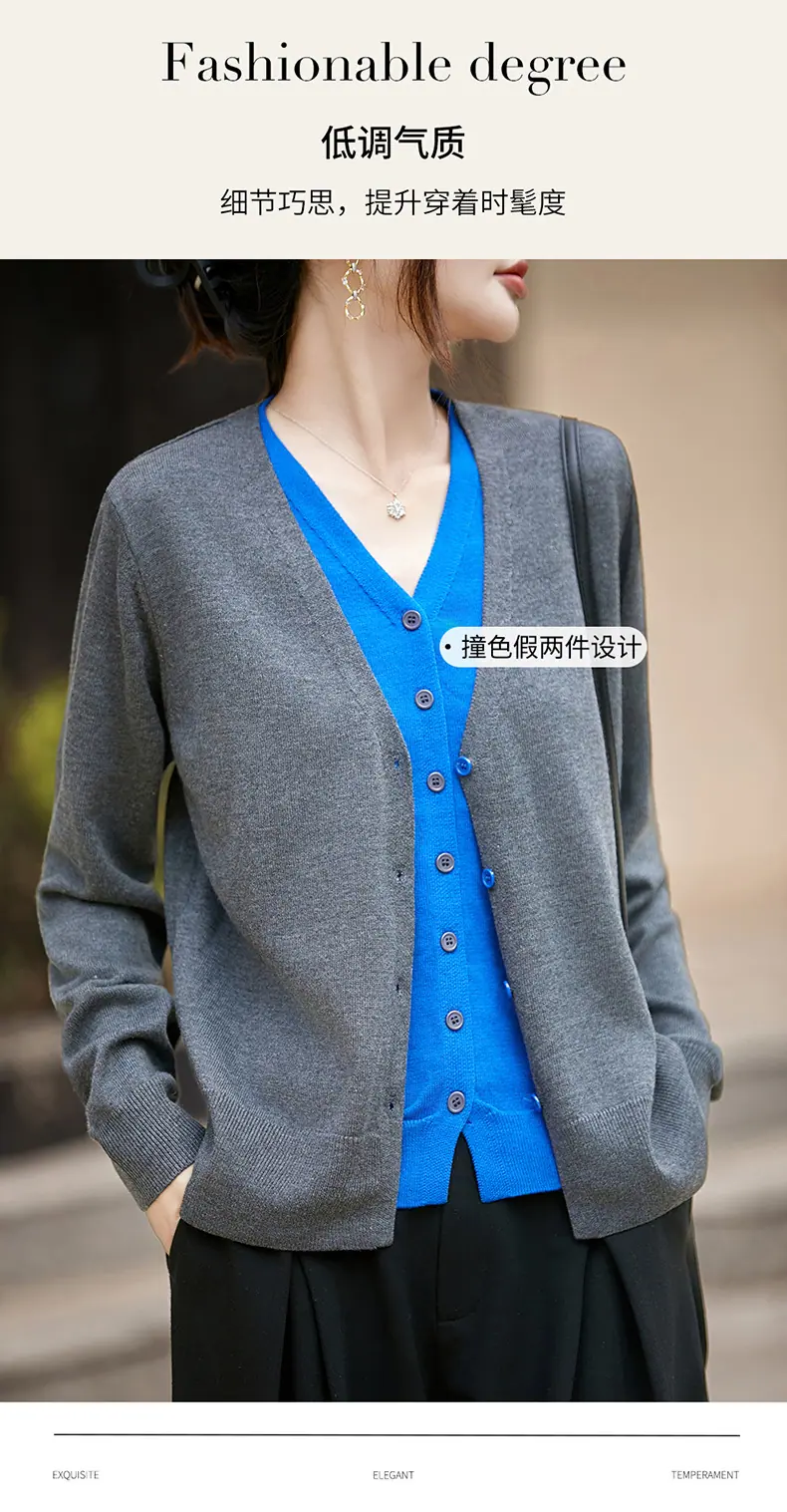 Cárdigan de Punto Fino de Lana Merino Falso de Dos Piezas con Cuello en V Diseño Color Block Nuevo Abrigo Suéter Otoño/Invierno Directo de Fábrica