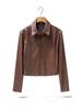 Europeo y Americano Transfronterizo Otoño 2025 Nueva Tendencia de Moda Femenina Chaqueta Versátil Retro con Solapa y Cierre Chaqueta de Cuero