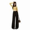 Pantalones de Traje para Mujer Naranja Infantil # Sarga Negro Puro Estrechos de Pierna Ancha de Alta Gama, Sueltos, Ajustados y Relajados, Casuales, de Longitud Completa