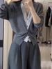 Cárdigan de Lana Pura para Otoño e Invierno para Mujer Cuello en V Falso Dos Piezas Bloque de Color Suéter de Moda Camisa Base Tejida Abrigo Top