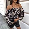 Primavera/Verano 2025 Nueva Ropa de Mujer Amazon Aliexpress Transfronterizo Tops Más Vendidos Camiseta de Hombro Descubierto de Manga Farol para Mujer
