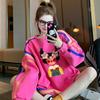 Sudadera Holgada de Otoño e Invierno con Forro Polar y Línea de Color en Contraste, Estilo Occidental de Moda para Mujer, Estampado de Dibujos Animados, Largo Medio, Corte Slim, Top para Uso Exterior