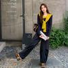 Compra Traje de Dos Piezas, Estilo Occidental 2025 Primavera y Otoño Nuevo Estilo Empalme de Color Contrastante Camiseta de Manga Larga + Pantalones de Pierna Ancha Traje Traje de Dos Piezas al por mayor en Joom.pro