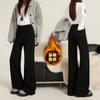 Pantalones de Pana Negros Acampanados para Mujer 2025 Otoño e Invierno Nuevos de Cintura Alta Sueltos Elásticos Talla Grande Rectos Sin Piernas