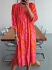 Moda Femenina Europea y Americana 2026 Sitio Independiente de Amazon Estampado Digital Botones Cuello en V Holgado Vestido Largo
