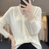 Compra Nuevo Cárdigan de Lana Fina de Manga Larga 25 Otoño Versátil Chaqueta de Punto para Mujer Cuello en V Transfronterizo al por mayor en Joom.pro